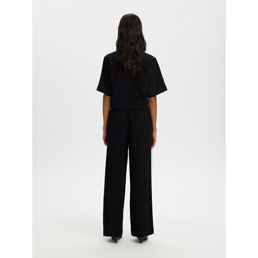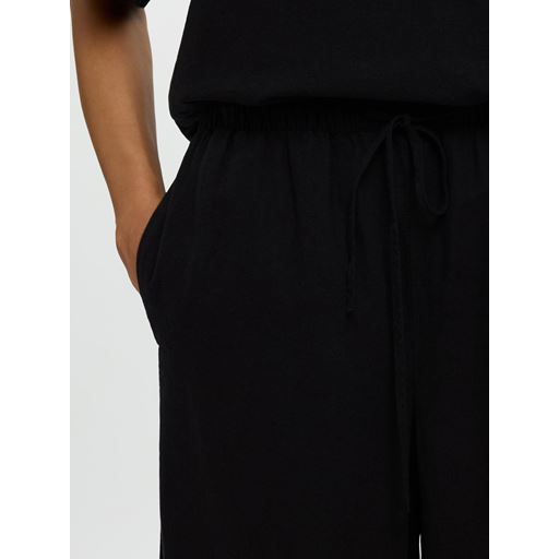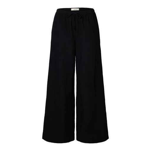 Luisa Wide Linen Blend Bukser, Black, 40