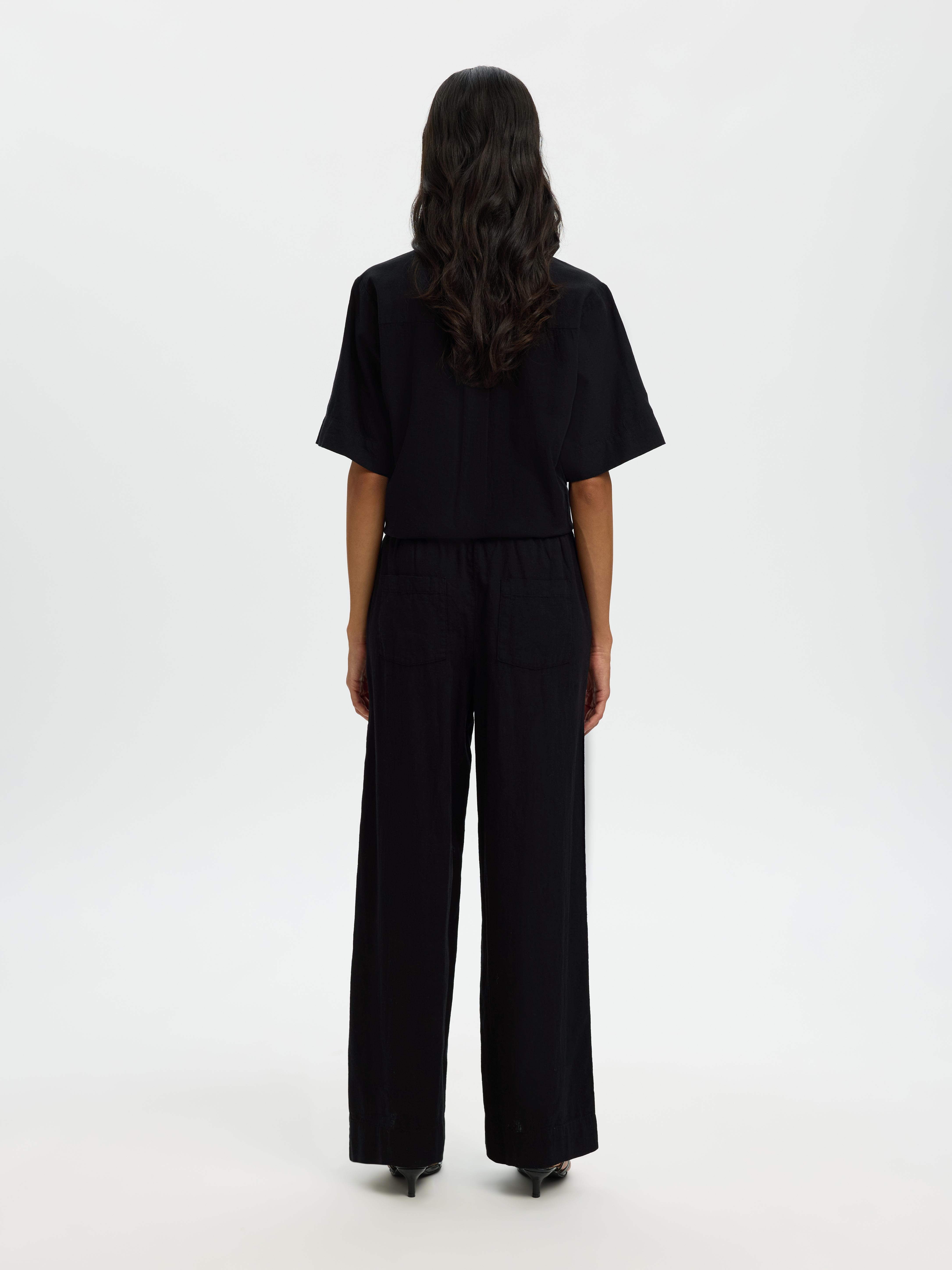 Luisa Wide Linen Blend Bukser, Black, 40