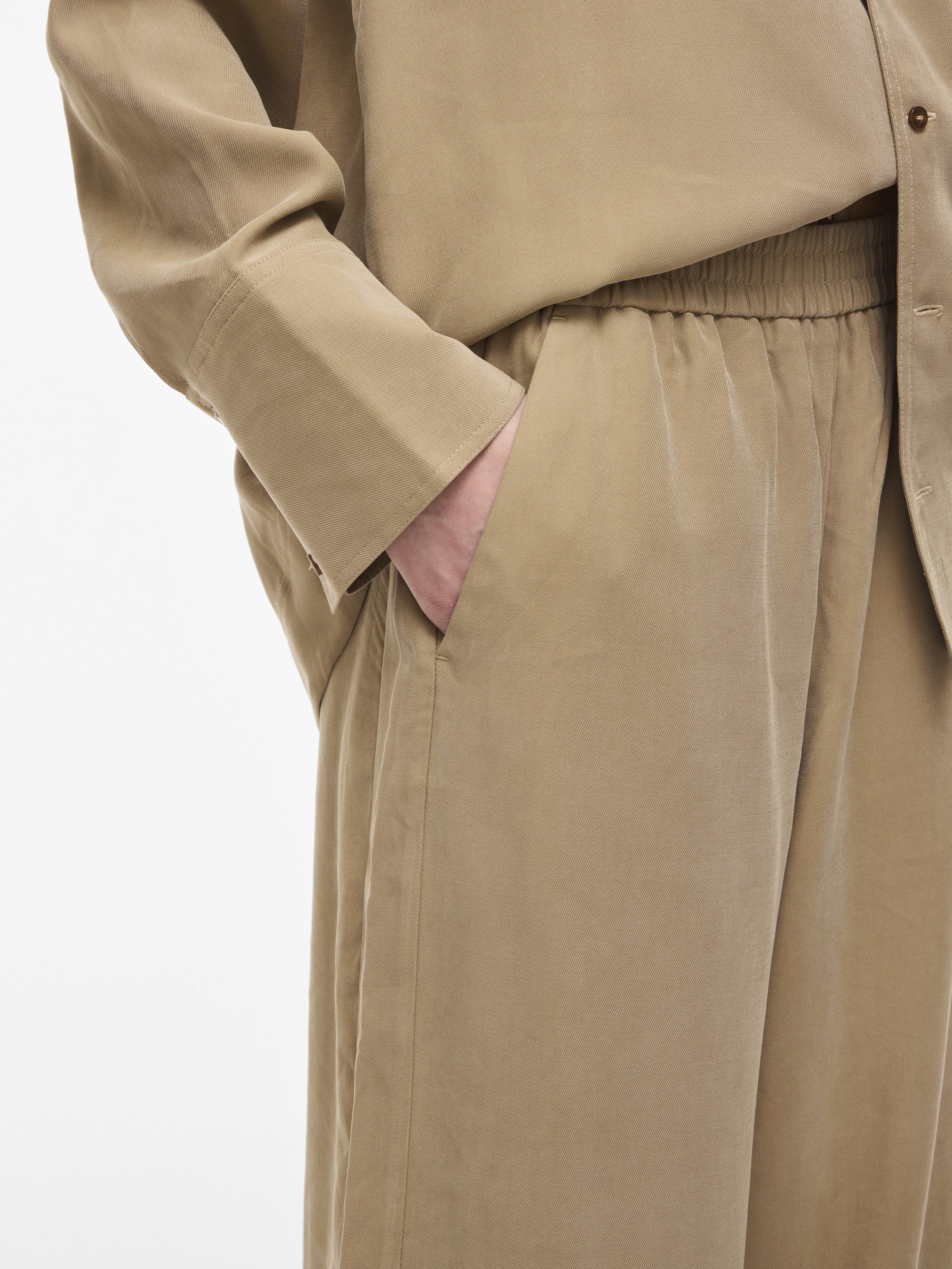 Elastikken i taljen gør, at bukserne sidder behageligt og tilpasser sig din kropsform, hvilket gør dem nemme og komfortable at have på hele dagen. Lommerne i siden tilføjer en praktisk dimension, hvor du kan opbevare småting som nøgler eller din telefon. Den løse pasform gør Melia Bukserne ideelle til at skabe et ubesværet og samtidigt stilfuldt outfit, der passer til enhver anledning. Med Rouge Edits fokus på design og komfort er disse bukser et must-have i enhver garderobe.