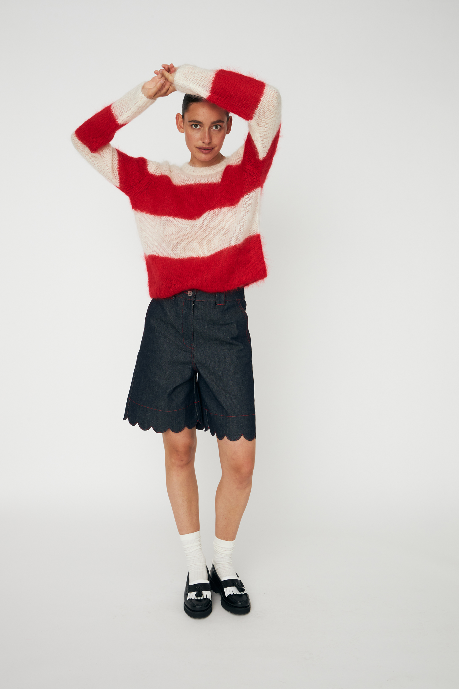 Unwashed Denim Scallop Shorts