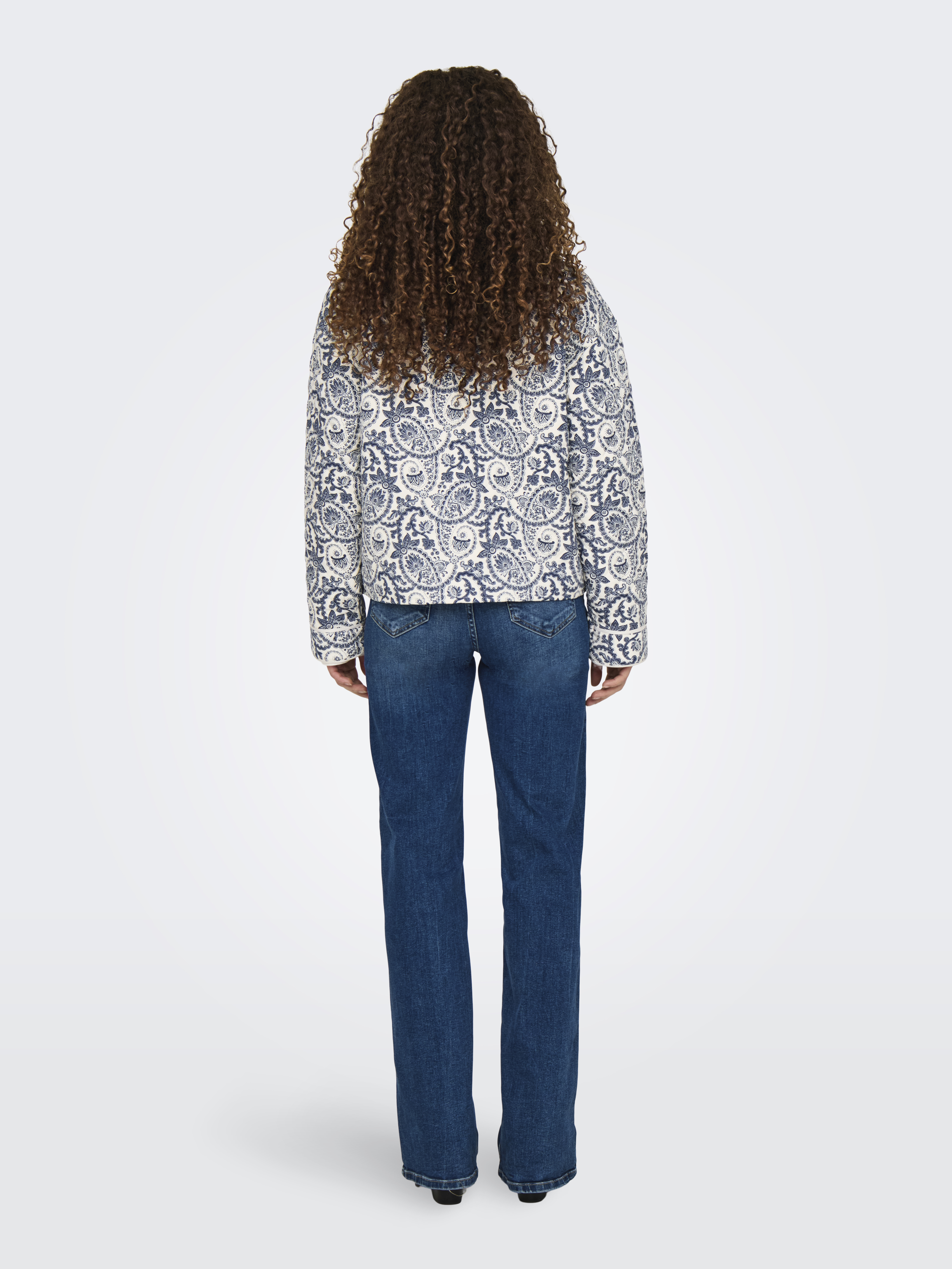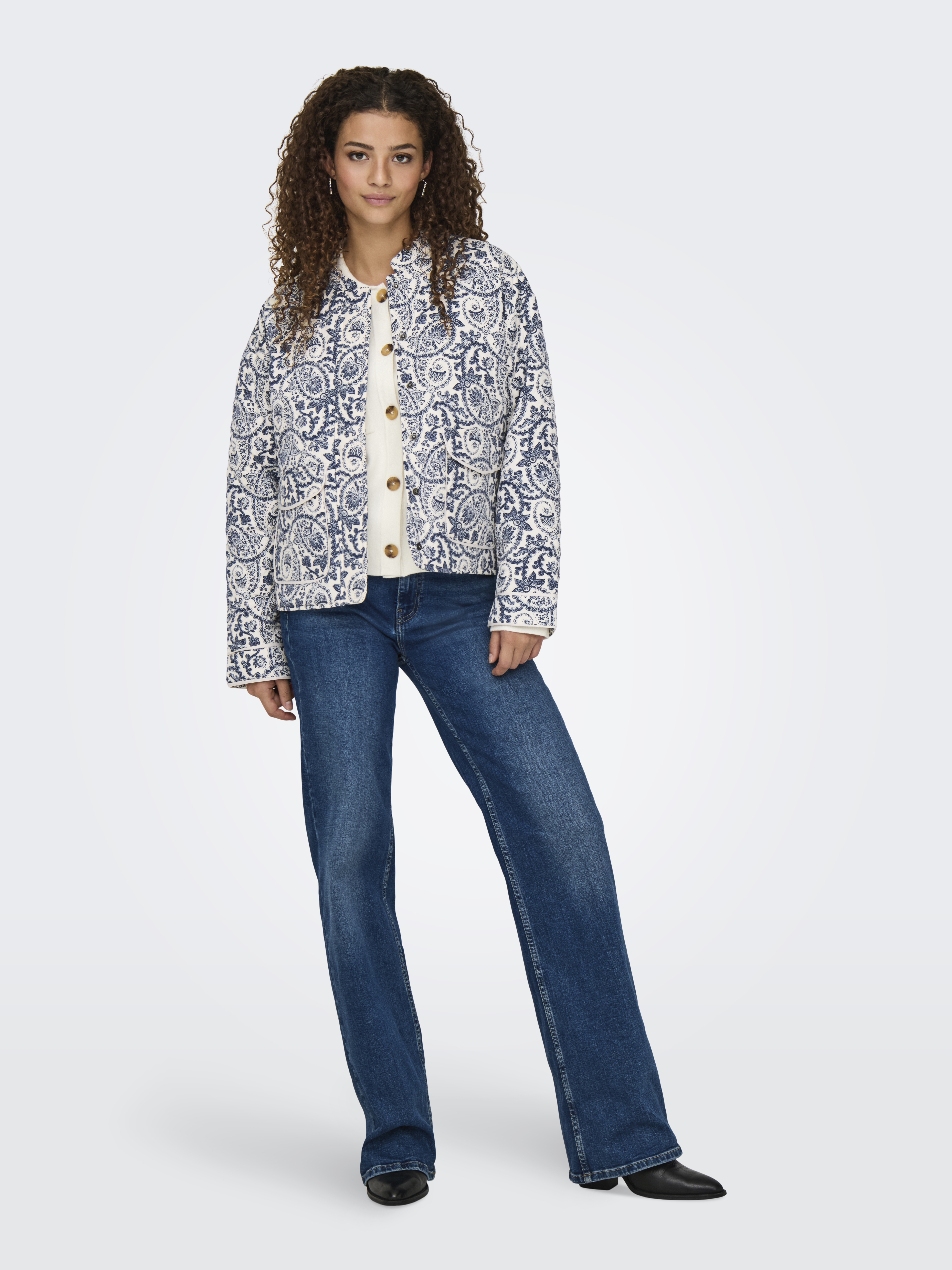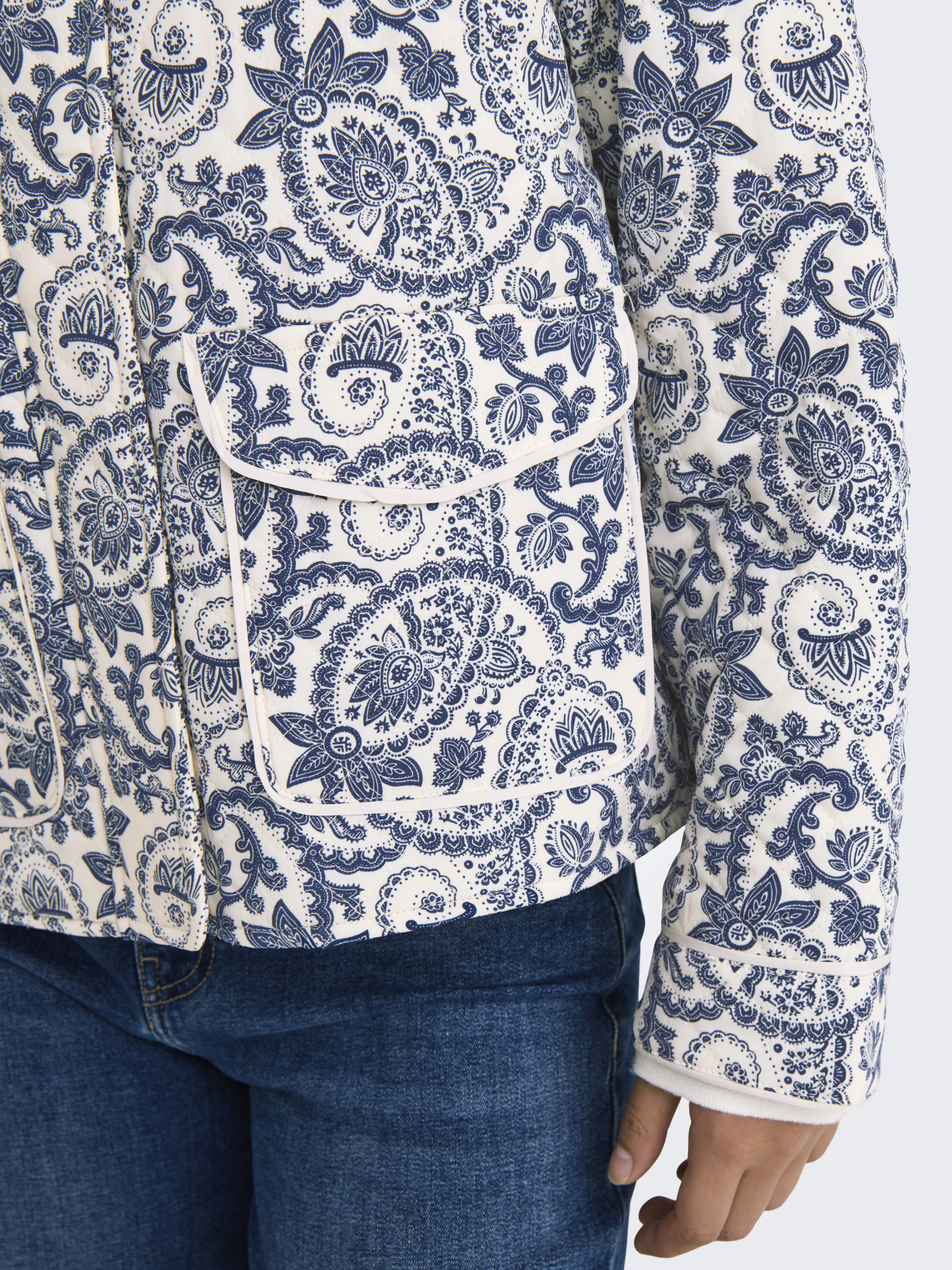 Hallie Quilted Jakke, Cloud Dancer/Blue Tile Print, XS