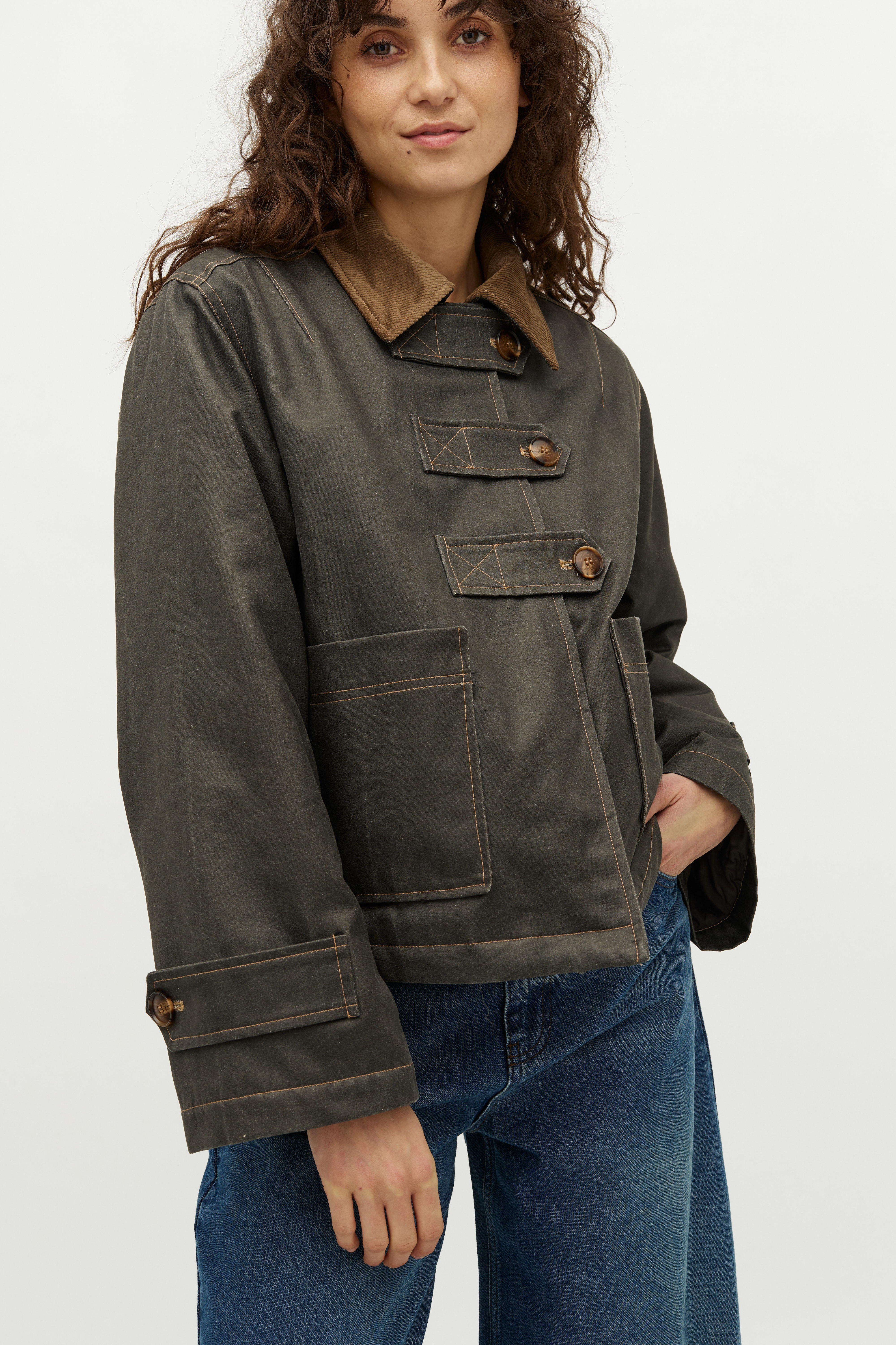 Ismeral-G Jakken fra Global Funk fremstår som en stilfuld og praktisk tilføjelse til enhver garderobe. Denne jakke byder på en langærmet konstruktion, der sikrer komfort og varme i køligere vejr, samtidig med at den giver et afslappet og moderne udseende. Jakken er designet med en unik fløjlskrave, som tilføjer et strejf af elegance og tekstur, der gør den velegnet til både hverdagsbrug og mere formelle anledninger. Med sine brede ærmer og boxy pasform giver jakken en trendy silhuet, der er både rummelig og behagelig. Knaplukningen foran gør det nemt at tage jakken af og på, mens de praktiske lommer foran tilbyder plads til opbevaring af små essentials som telefon og nøgler. Ismeral-G Jakken er et fremragende valg for dem, der værdsætter både stil og funktionalitet i deres overtøj.