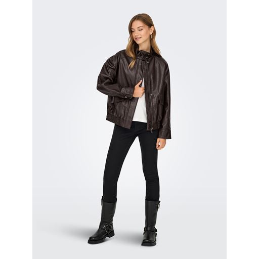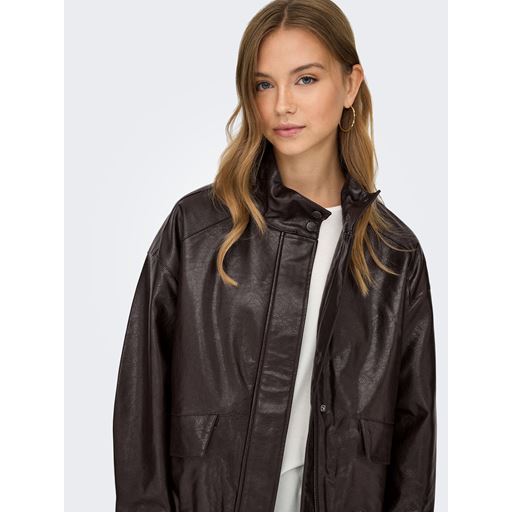 Julia Faux Leather Bomberjakke, Chocolate Torte, XL