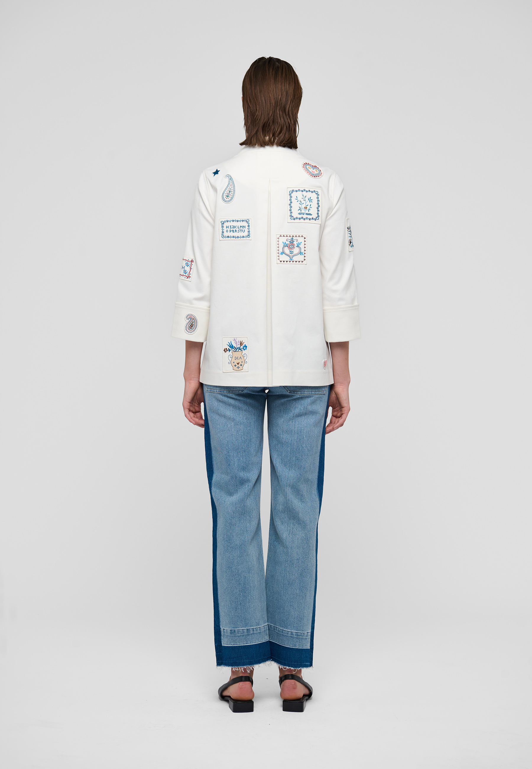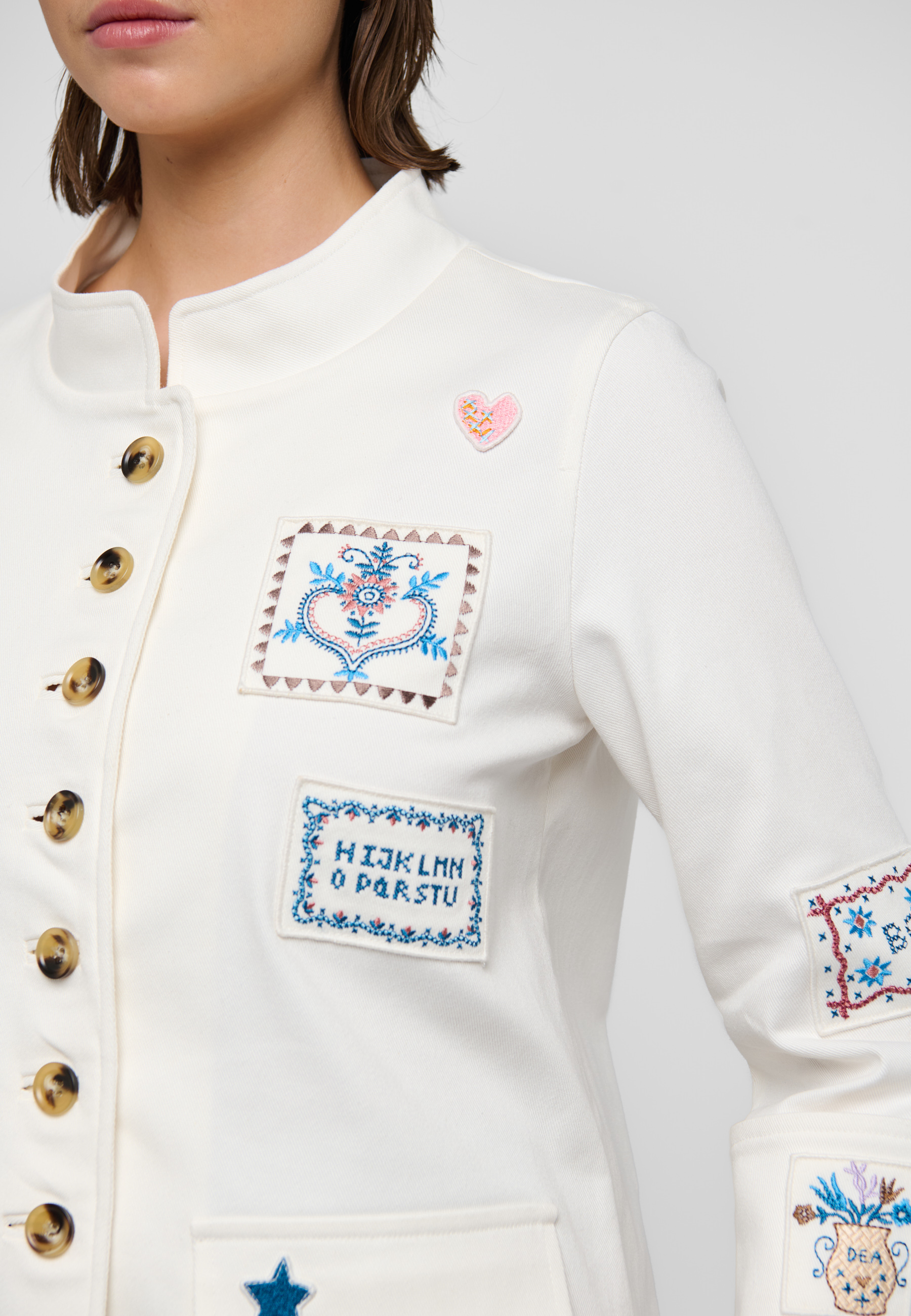 Jakken er udsmykket med smukke broderede motiver, der giver en unik og kunstnerisk detalje. Frontlommerne tilføjer både funktionalitet og stil, perfekt til at opbevare dine småting. En læg på ryggen sikrer en god drapering og bevægelsesfrihed, mens knaplukningen foran giver et klassisk look. Med en almindelig pasform er jakken komfortabel og nem at style med forskellige outfits. Uanset om du skal på arbejde eller til en mere afslappet anledning, vil LanzaDEA jakken fra Dea Kudibal være et uundværligt element i din garderobe.