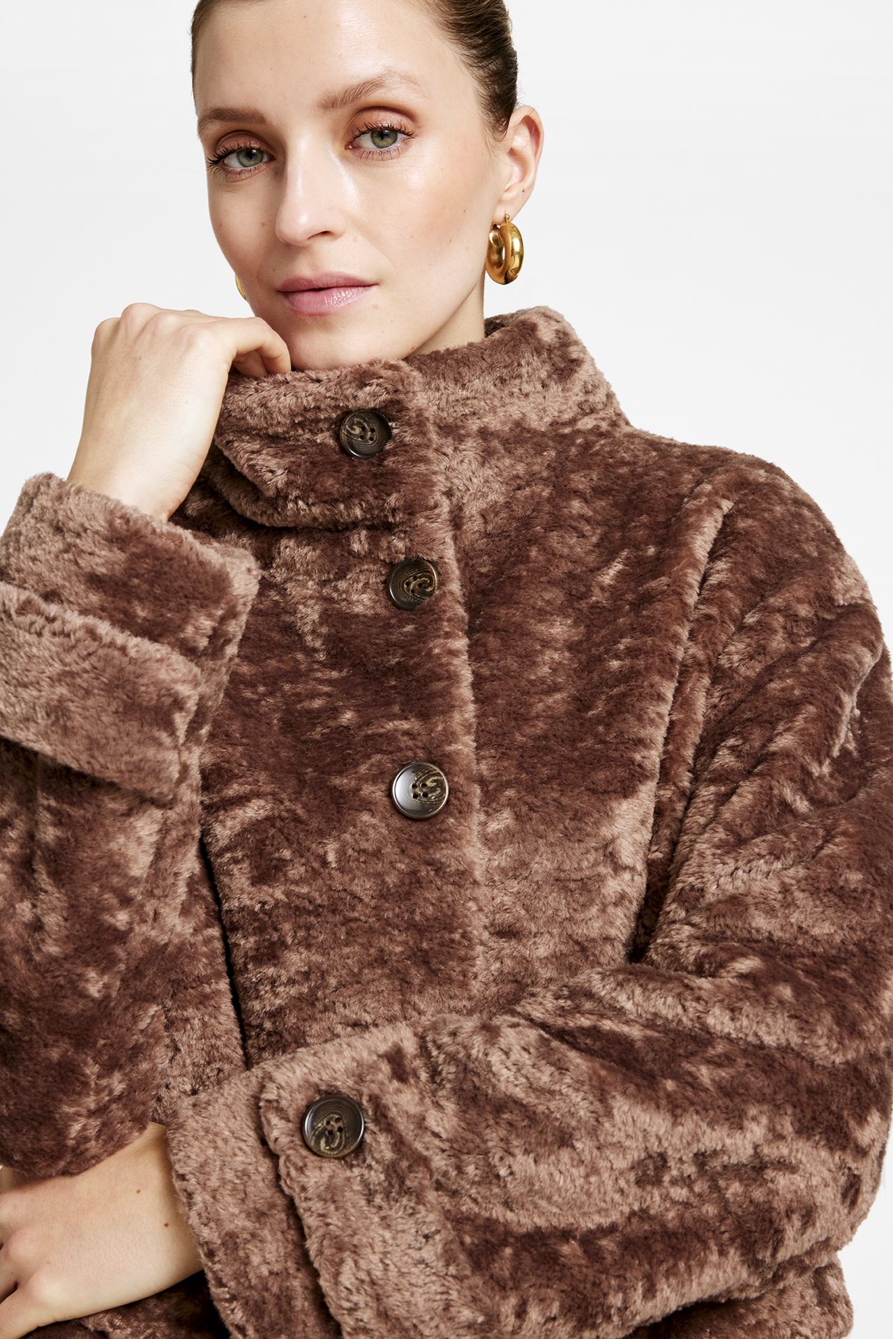 Gustavs Maddy jakke er et elegant valg til enhver garderobe og kombinerer stil med komfort. Jakken er fremstillet af imiteret pels, hvilket giver den et luksuriøst og moderne udseende. Den høje hals på jakken tilføjer ekstra varme og beskyttelse mod vind og vejr, hvilket gør den ideel til de køligere måneder. Med knaplukning kan du nemt regulere, hvor tæt jakken skal sidde, samtidig med at du opretholder et klassisk look.