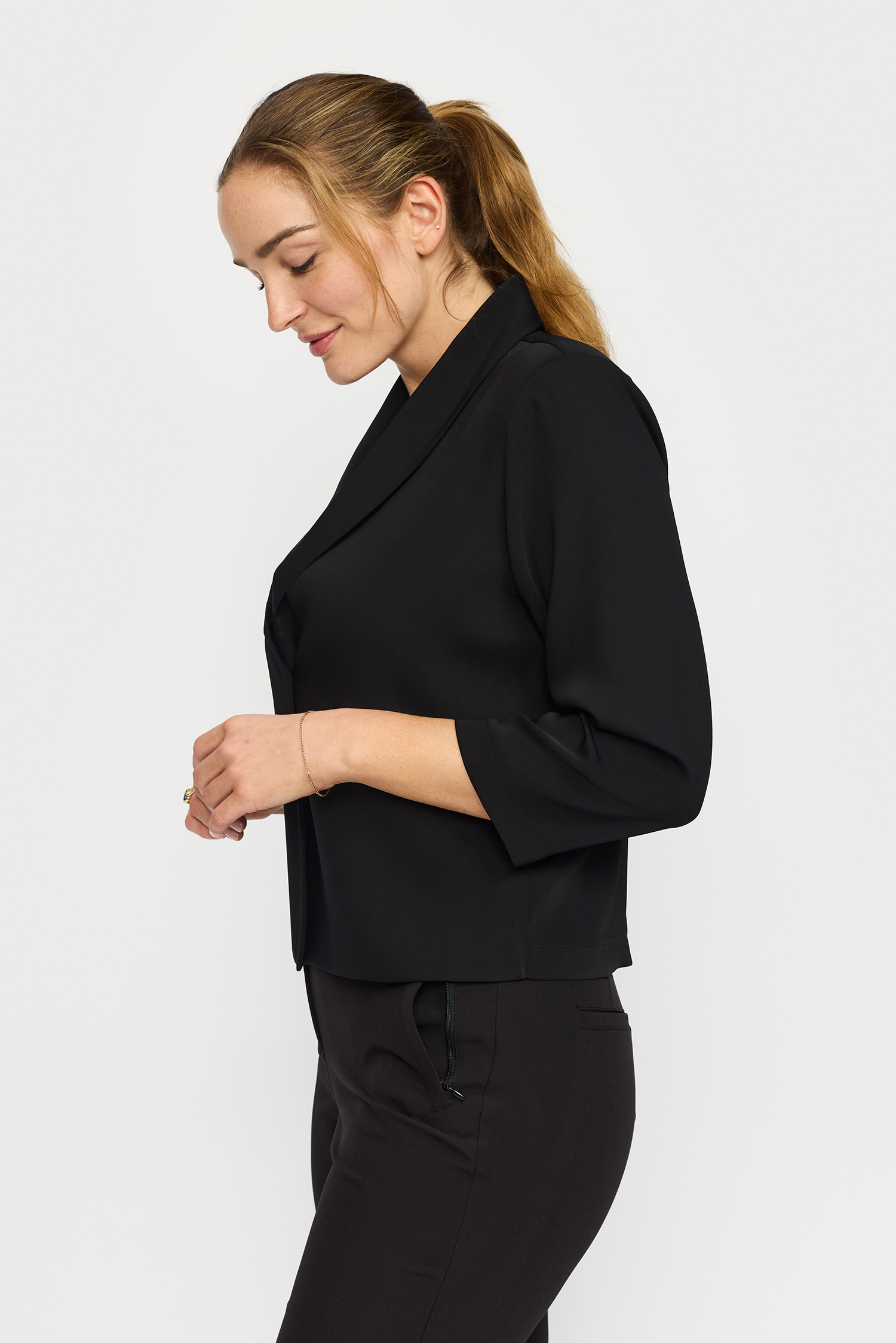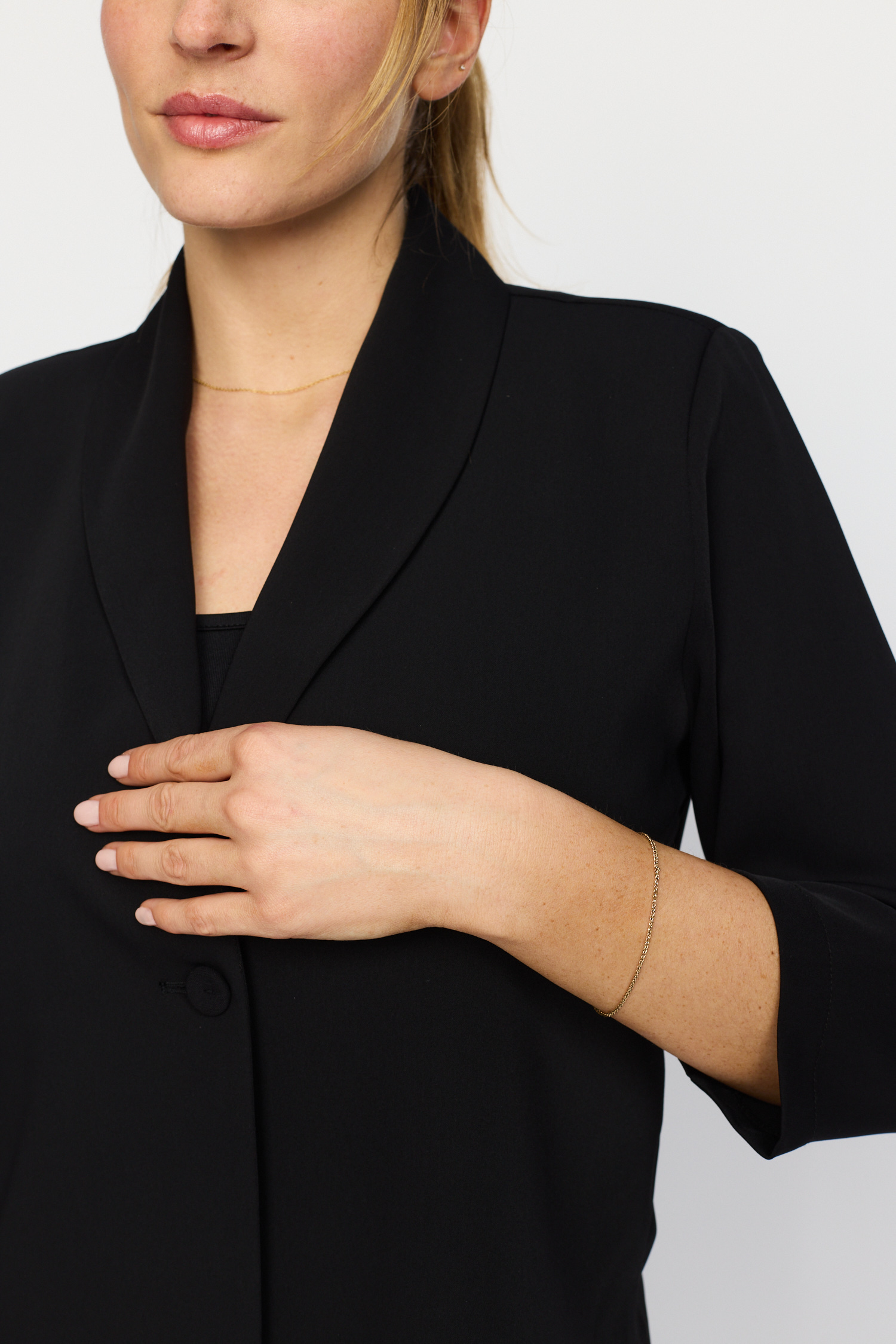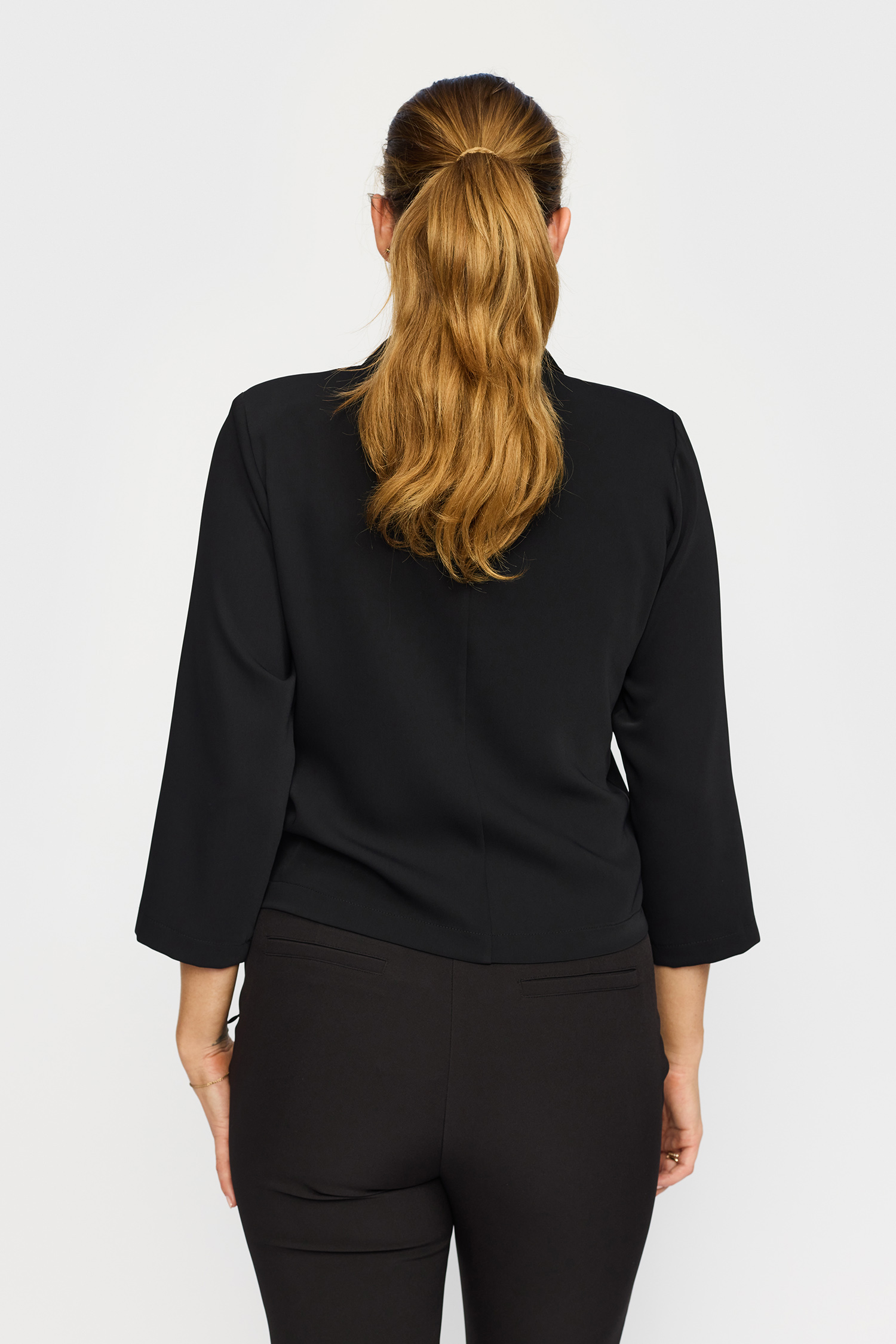 Oda Blazerjakken fra 2-Biz er en stilfuld og alsidig tilføjelse til din garderobe, der kombinerer elegance med komfort. Denne jakke er designet med 3/4-ærmer, hvilket gør den ideel til både forårs- og efterårsdage, hvor vejret kan være skiftende. Den afrundede krave tilføjer et klassisk touch til jakken og giver et blødt udtryk, der nemt kan kombineres med forskellige stiltyper og accessories.