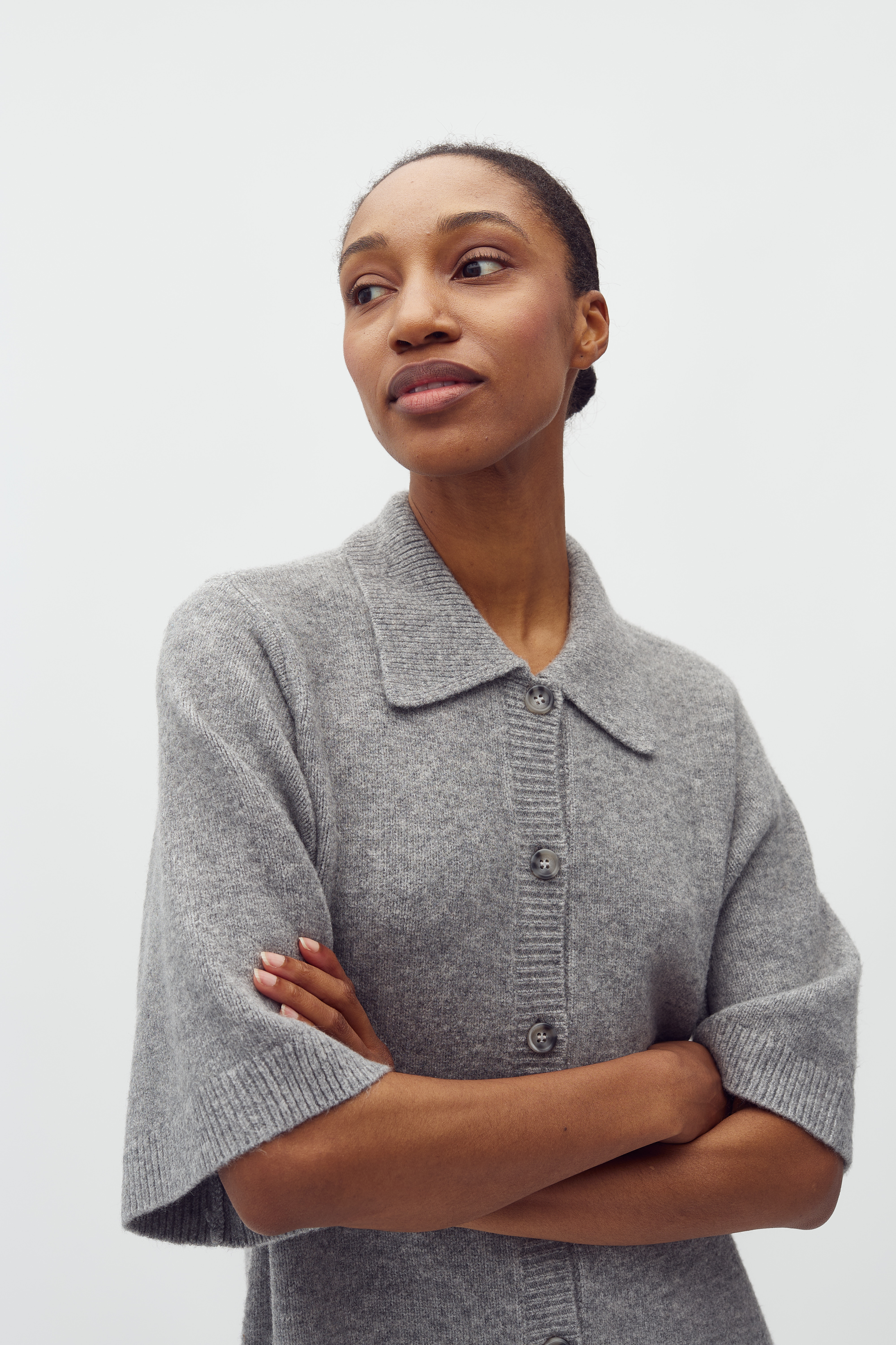 Biman-M Kjolen kommer med en almindelig krave, der tilføjer et klassisk touch til det ellers afslappede design, mens knaplukningen gør det nemt at justere kjolen efter behov. Ribkanten sikrer, at kjolen sidder godt og fremhæver kroppens naturlige former på en elegant måde. Den løse pasform giver en afslappet og komfortabel følelse, der gør det muligt at bevæge sig frit, uanset hvad dagen bringer. Med sin tidløse stil og mbyM's kvalitetsdesign, er denne kjole et must-have i enhver garderobe.