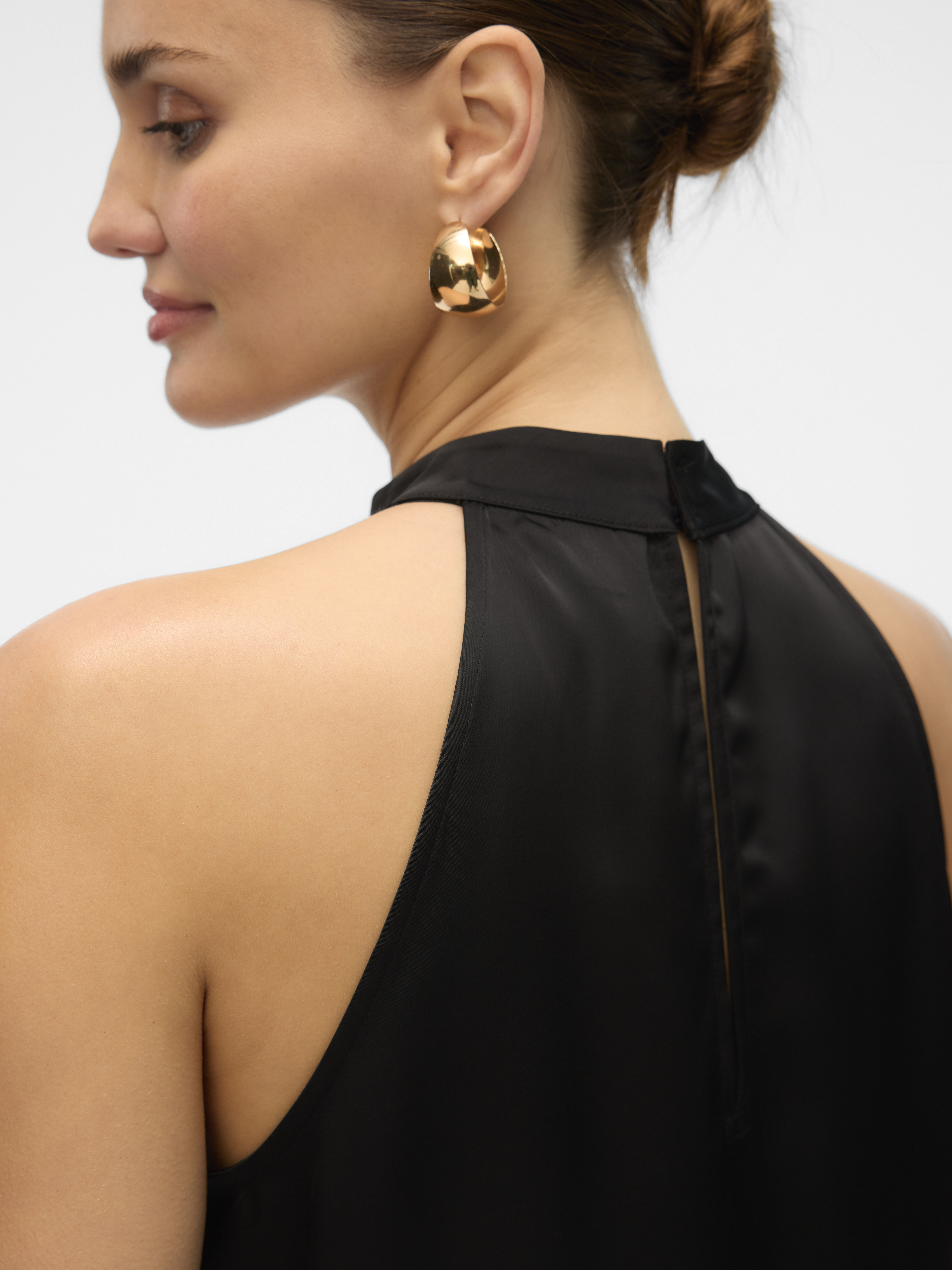 Opdag den stilfulde elegance med Elena kjolen fra Vero Moda, der er en skøn tilføjelse til enhver garderobe. Denne kjole er designet til at fremhæve din feminine silhuet med sin halterneck, der giver en sofistikeret og moderne twist. Knaplukningen i nakken sikrer en nem og elegant lukning, der fuldender det klassiske look.
