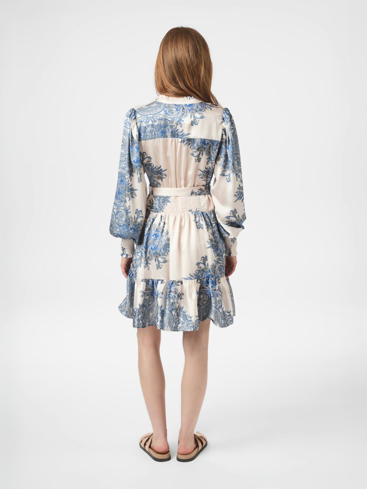 Malfida Paisley Border Kjole, Ash Blue, 36
