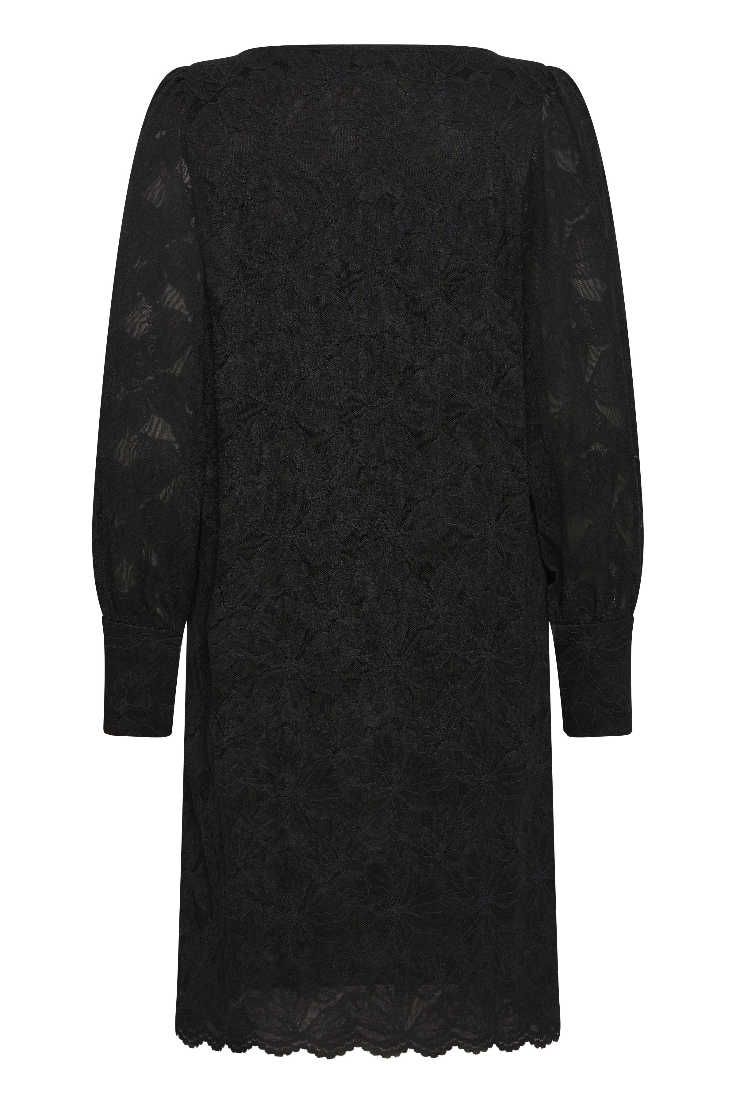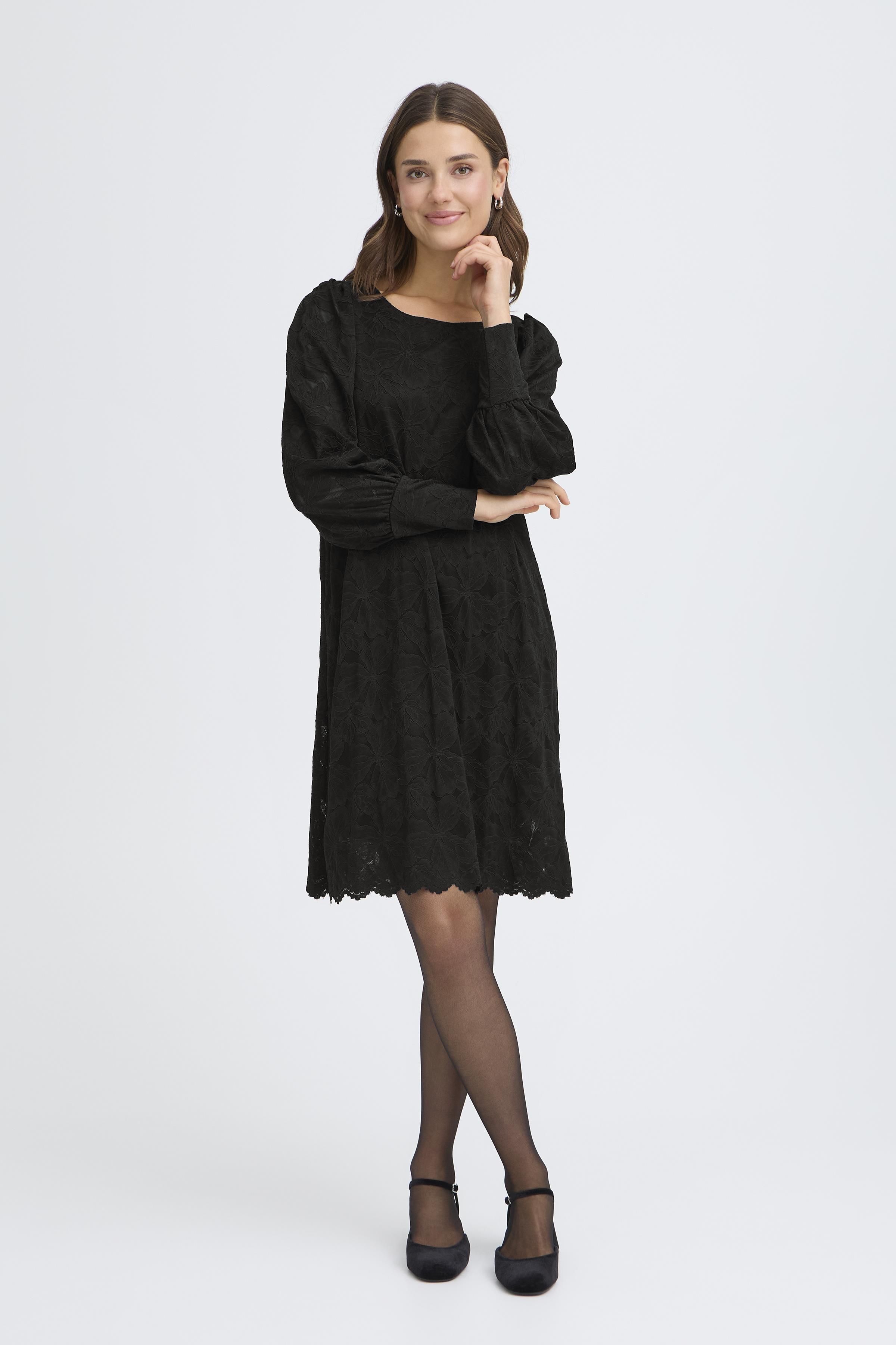 Det delikate blomstermotiv i blonden giver et romantisk præg, mens den almindelige pasform sikrer en behagelig oplevelse hele dagen. Den bølgede kant i bunden og pufeffekten ved skuldrene tilføjer et strejf af stil og finesse. Mirabella kjolen fra Fransa er det perfekte valg for dig, der ønsker et tidløst design med unikke detaljer, der fremhæver din personlige stil. Uanset om du styler den med stiletter for et sofistikeret udtryk eller sneakers for et casual look, så er denne kjole en alsidig tilføjelse til din garderobe.