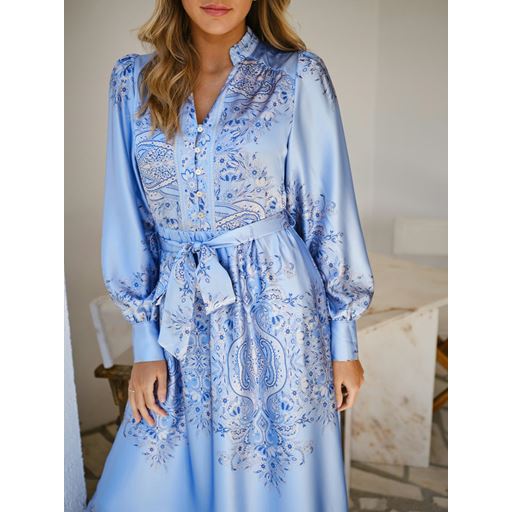 Nova Paisley Border Kjole, Light Blue, 38