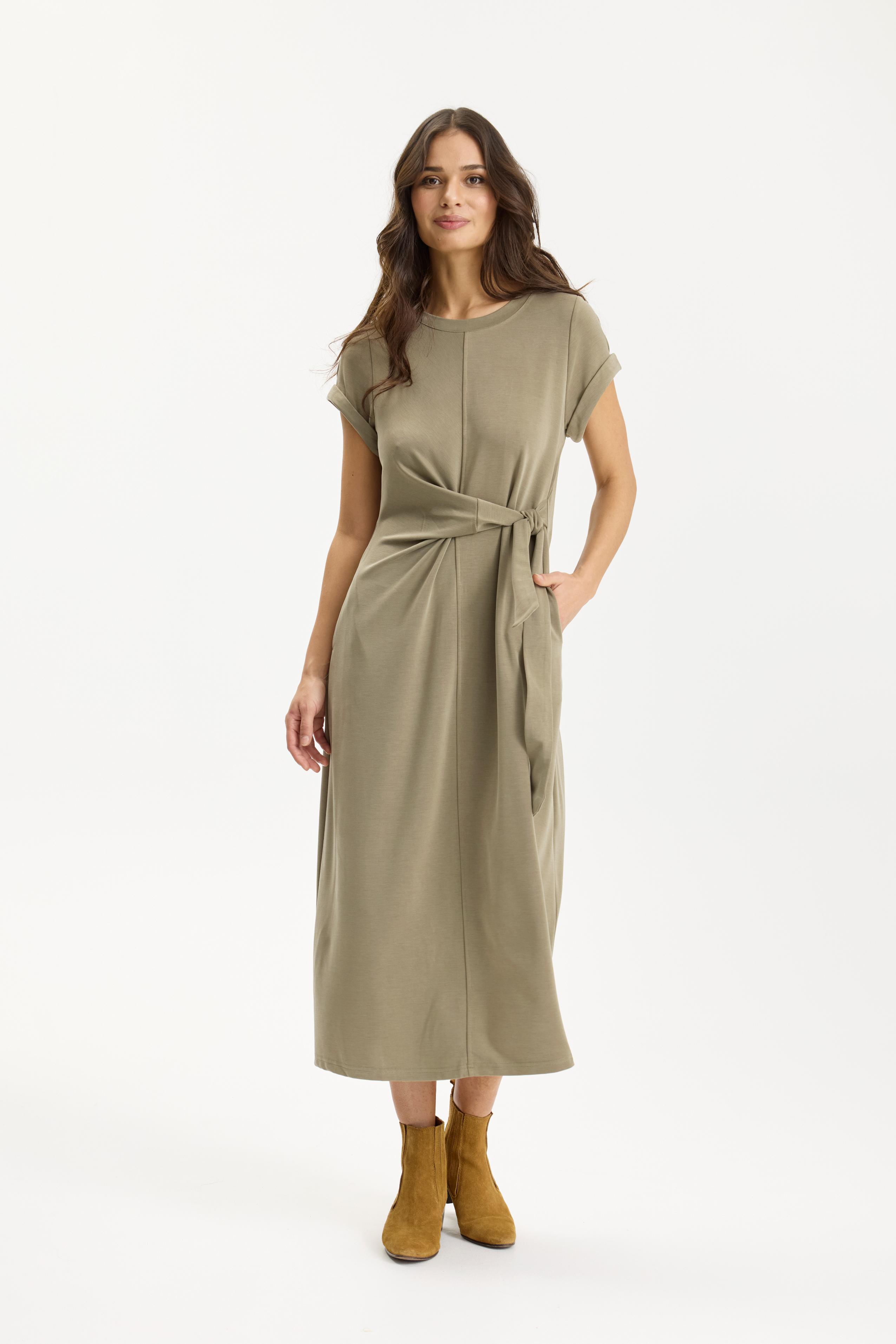 IN FRONT præsenterer den stilfulde Paloma kjole, der kombinerer elegance og enkelthed på smukkeste vis. Denne kjole er designet med en rund halsudskæring, som giver et klassisk og tidløst udtryk. Kjolens korte ærmer gør den ideel til både varme sommerdage og som en del af et lag-på-lag outfit i de køligere måneder. Paloma kjolen er i en trendy midi-længde, der tilføjer et sofistikeret touch og gør den velegnet til både hverdagsbrug og mere formelle anledninger. Bindebåndet i taljen giver mulighed for at justere pasformen, hvilket fremhæver din figur på en flatterende måde. Med sin almindelige pasform sikrer kjolen komfort hele dagen, mens den stadig ser elegant ud. Kjolen er et alsidigt stykke tøj, der kan styles op eller ned, afhængigt af anledningen.