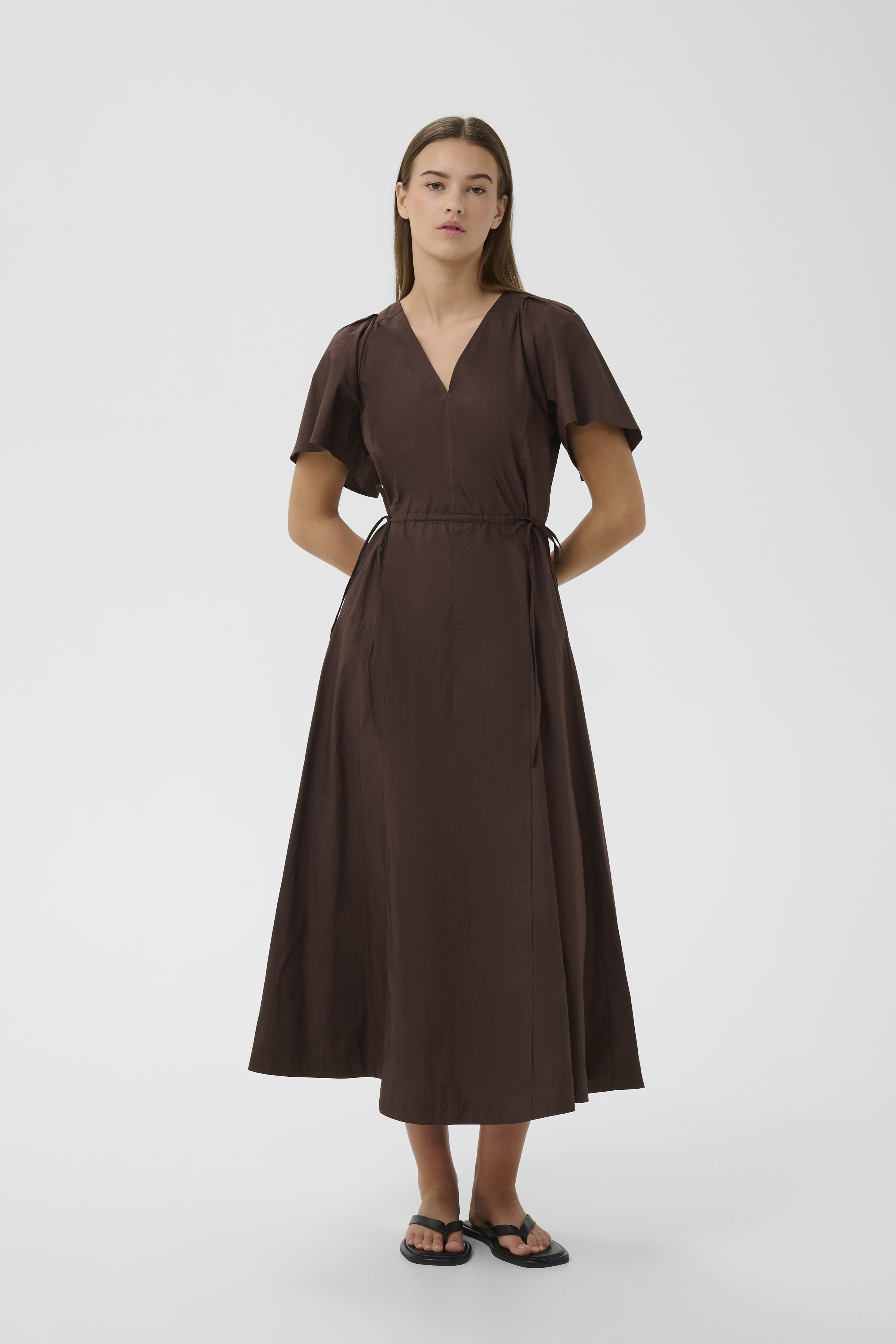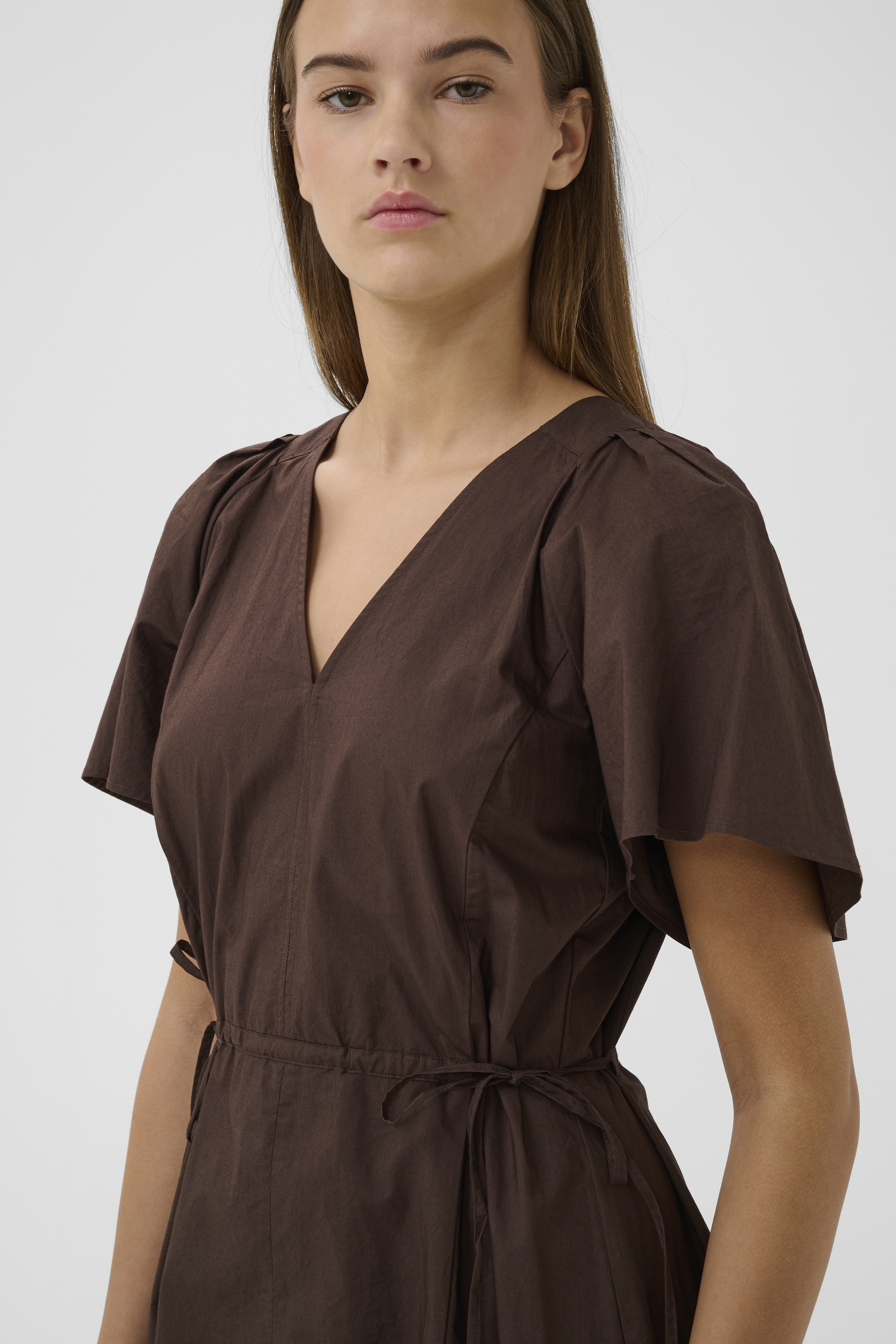 RavenIW Kjole fra InWear er et elegant valg til enhver garderobe. Denne kjole kombinerer stil og komfort, hvilket gør den ideel til mange forskellige lejligheder. Med sine korte ærmer og V-hals er kjolen både klassisk og moderne i sit udtryk. Kjolens midi-længde giver en tidløs silhuet, der kan bæres både til hverdag og specielle anledninger.
