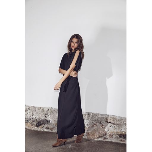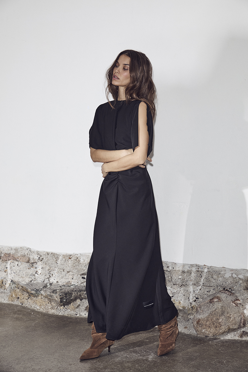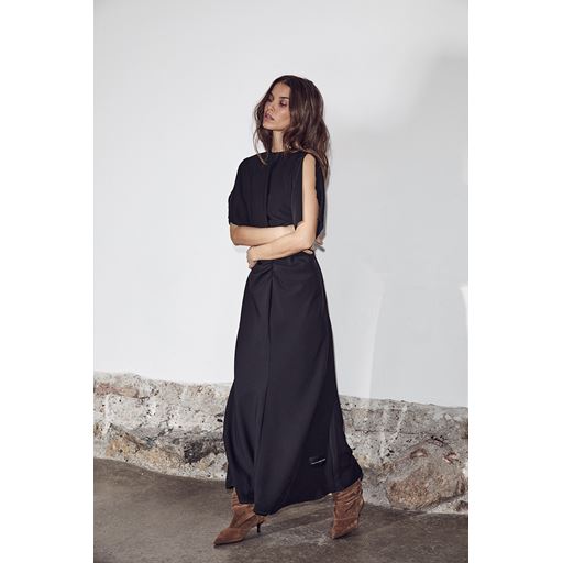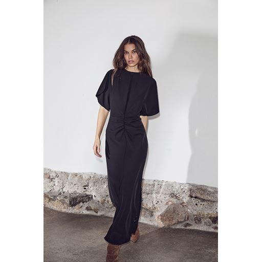 Satari Long Gather Kjole, Black, XL