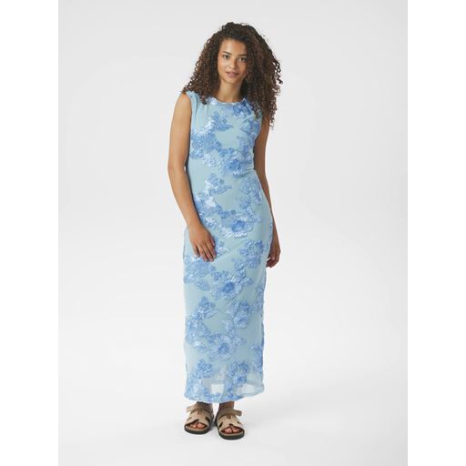 Tiranna Big Flower Mesh Kjole, Light Blue, 40