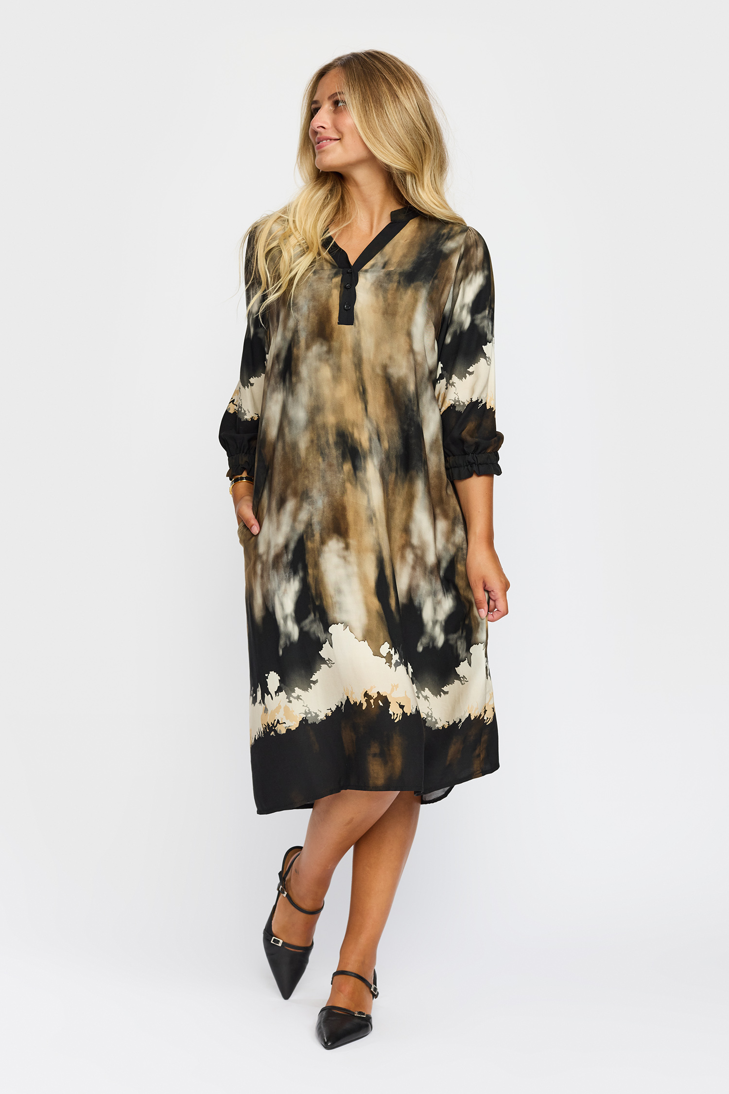 Valmas Kjole fra 2-Biz er et elegant og moderne valg inden for lange kjoler. Denne kjole er perfekt til både hverdag og festlige lejligheder takket være dens alsidige design. Med sine 3/4-ærmer tilbyder den en god balance mellem stil og komfort, hvilket gør den ideel til både køligere og mildere vejrforhold.