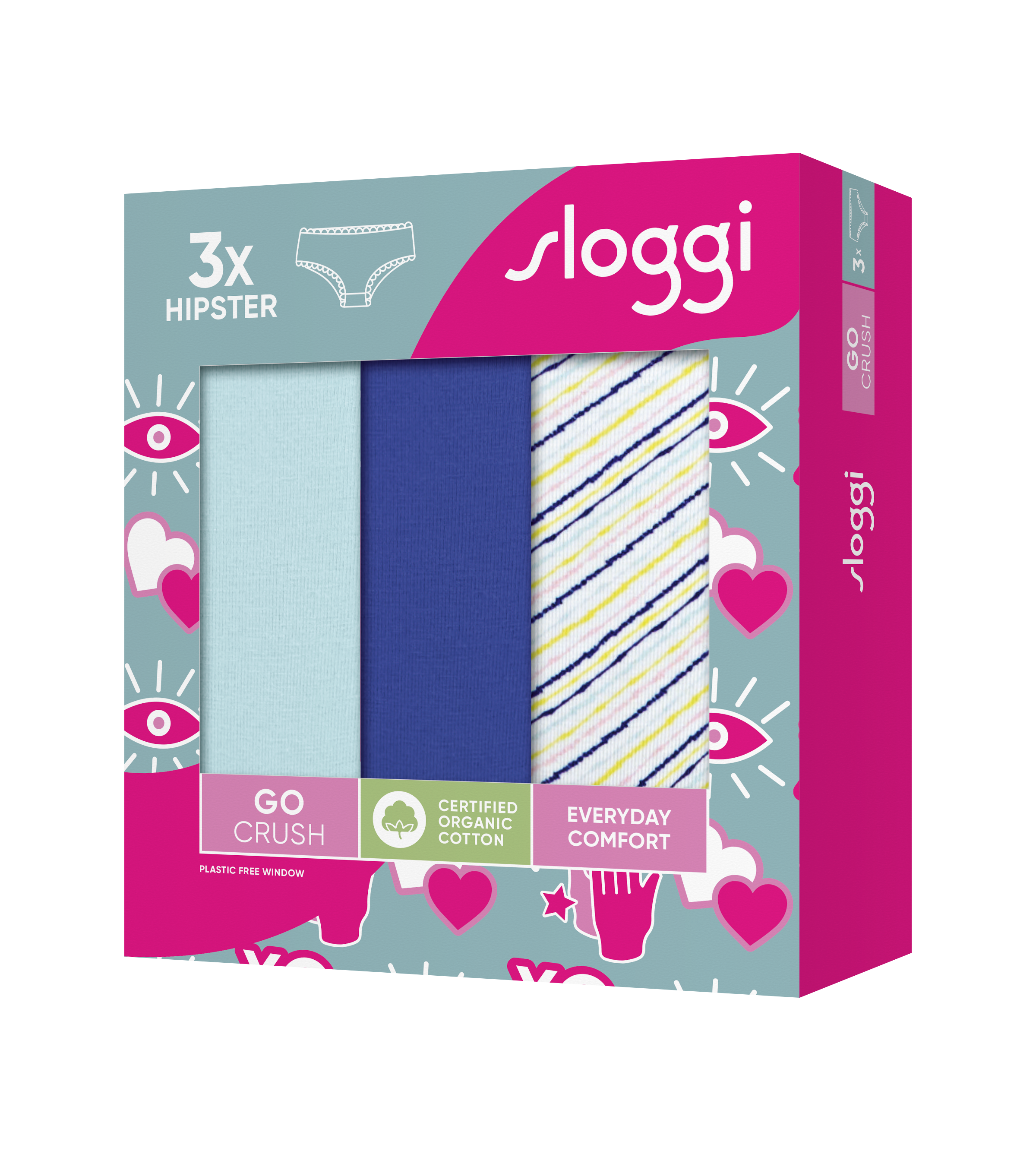 Go Crush 3-pak Hipsters, Blue Light Combination, XL