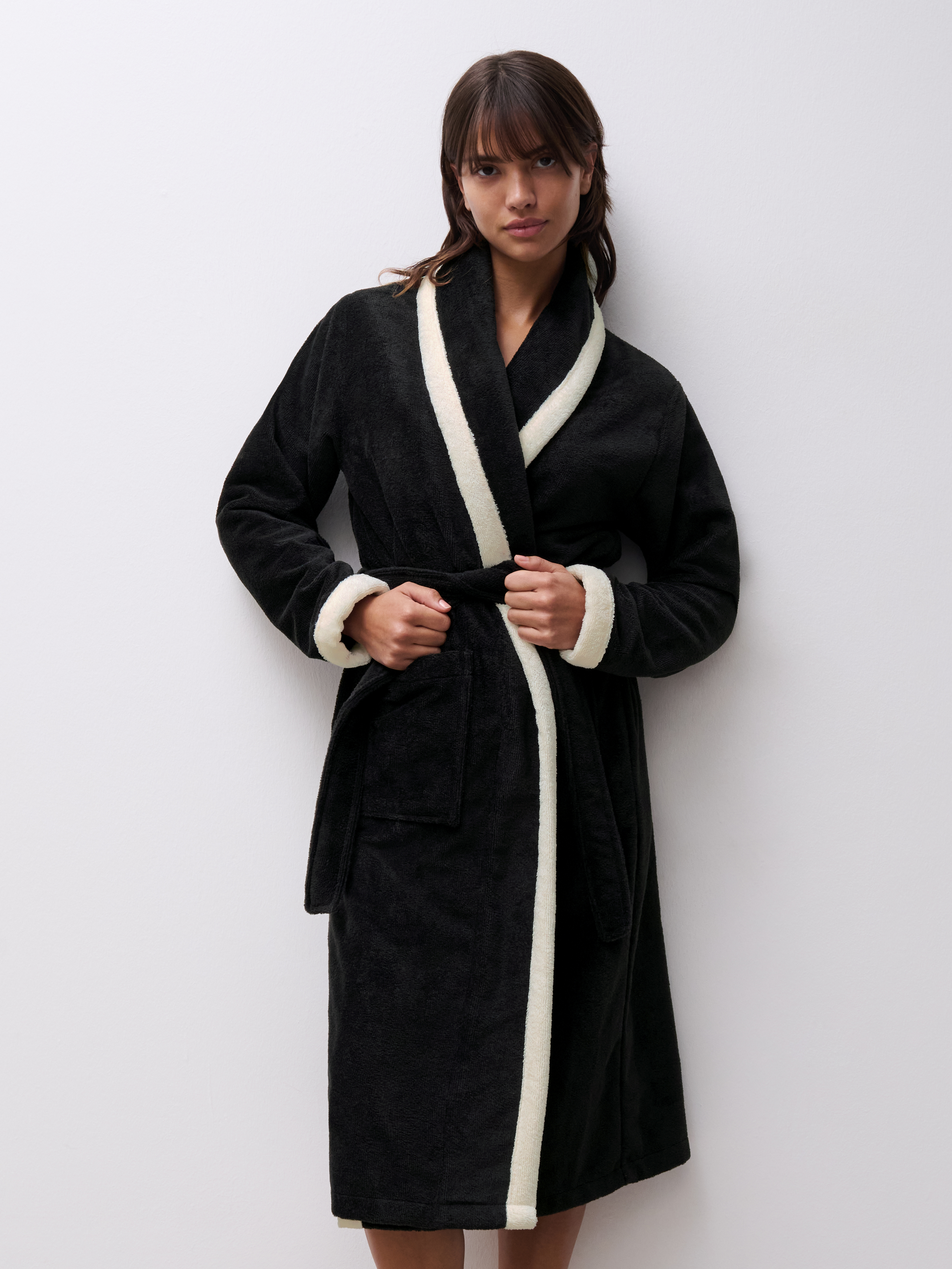 Ruby Morgenkåben er fremstillet i en blød blanding af bomuld og polyester, der sikrer en behagelig og let følelse mod huden. Materialevalget gør den ideel til både kølige morgener og afslappede aftener. Denne morgenkåbe er ikke kun et stilfuldt valg, men også et praktisk et, som hurtigt vil blive en uundværlig del af din daglige rutine. Giv dig selv eller en nær en luksuriøs oplevelse med denne alsidige og komfortable morgenkåbe fra Femilet.
