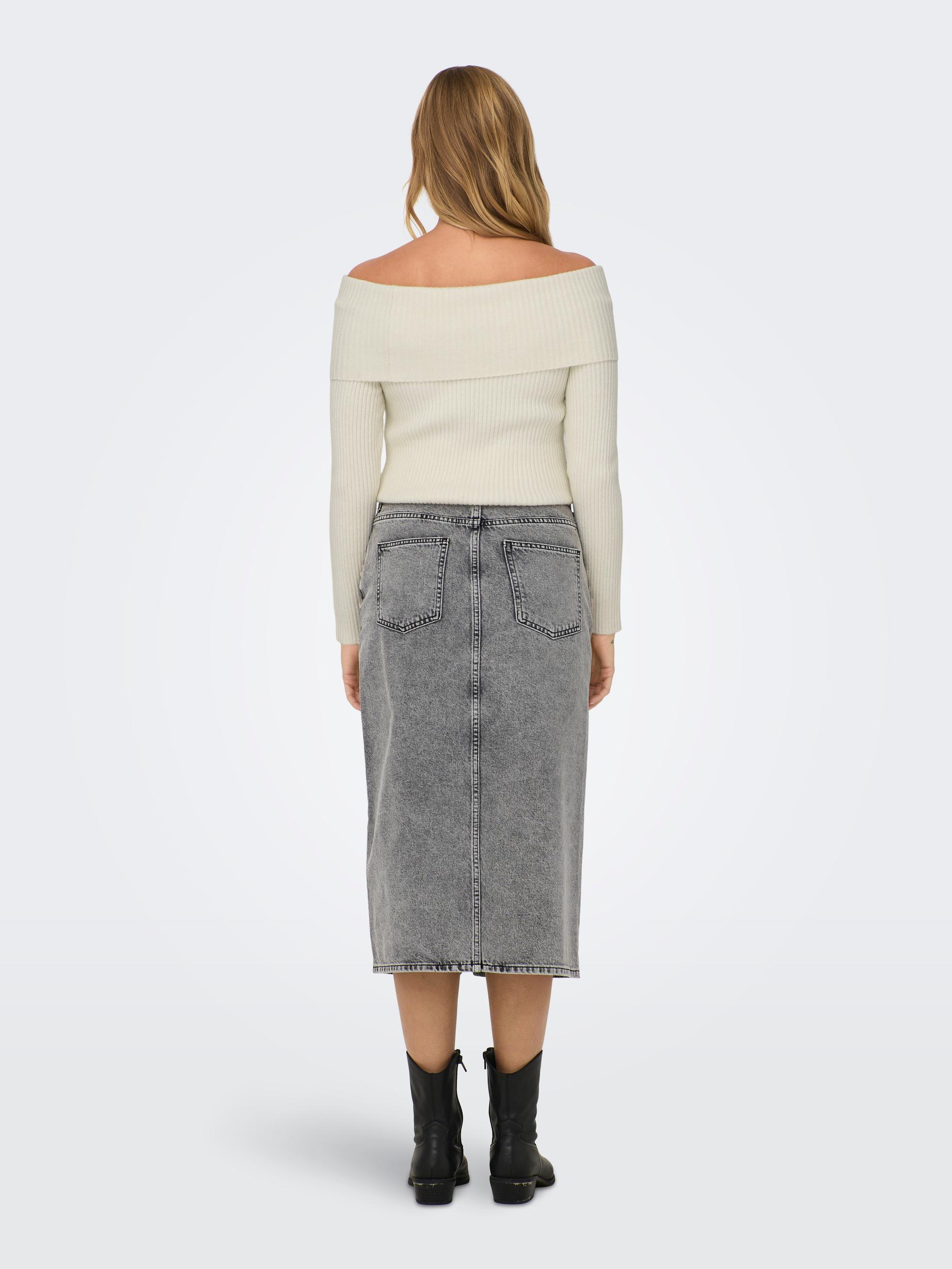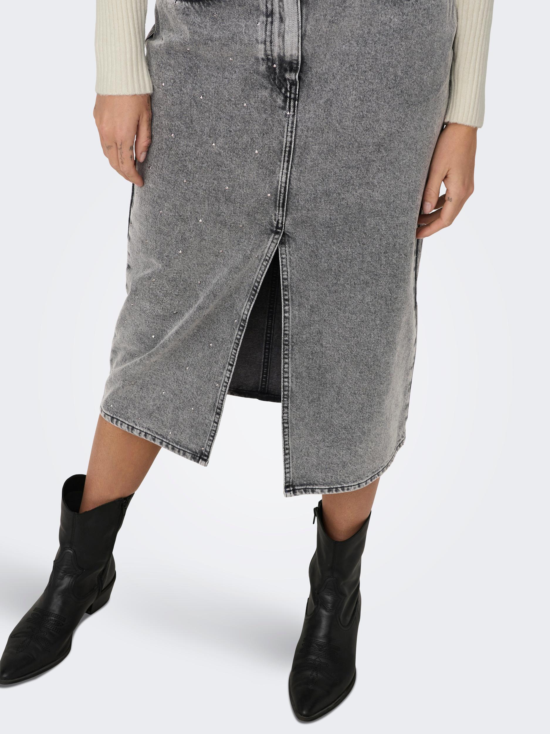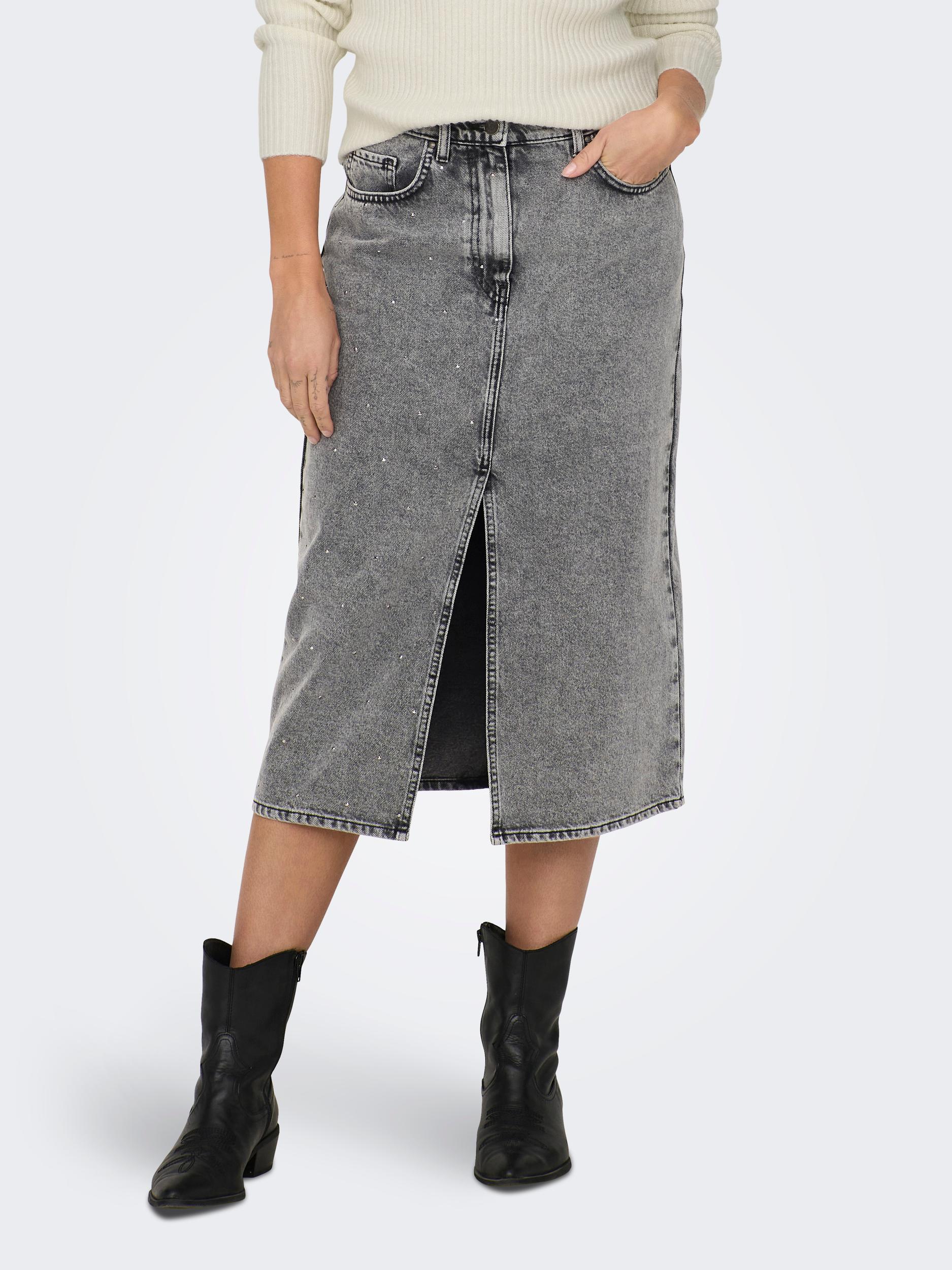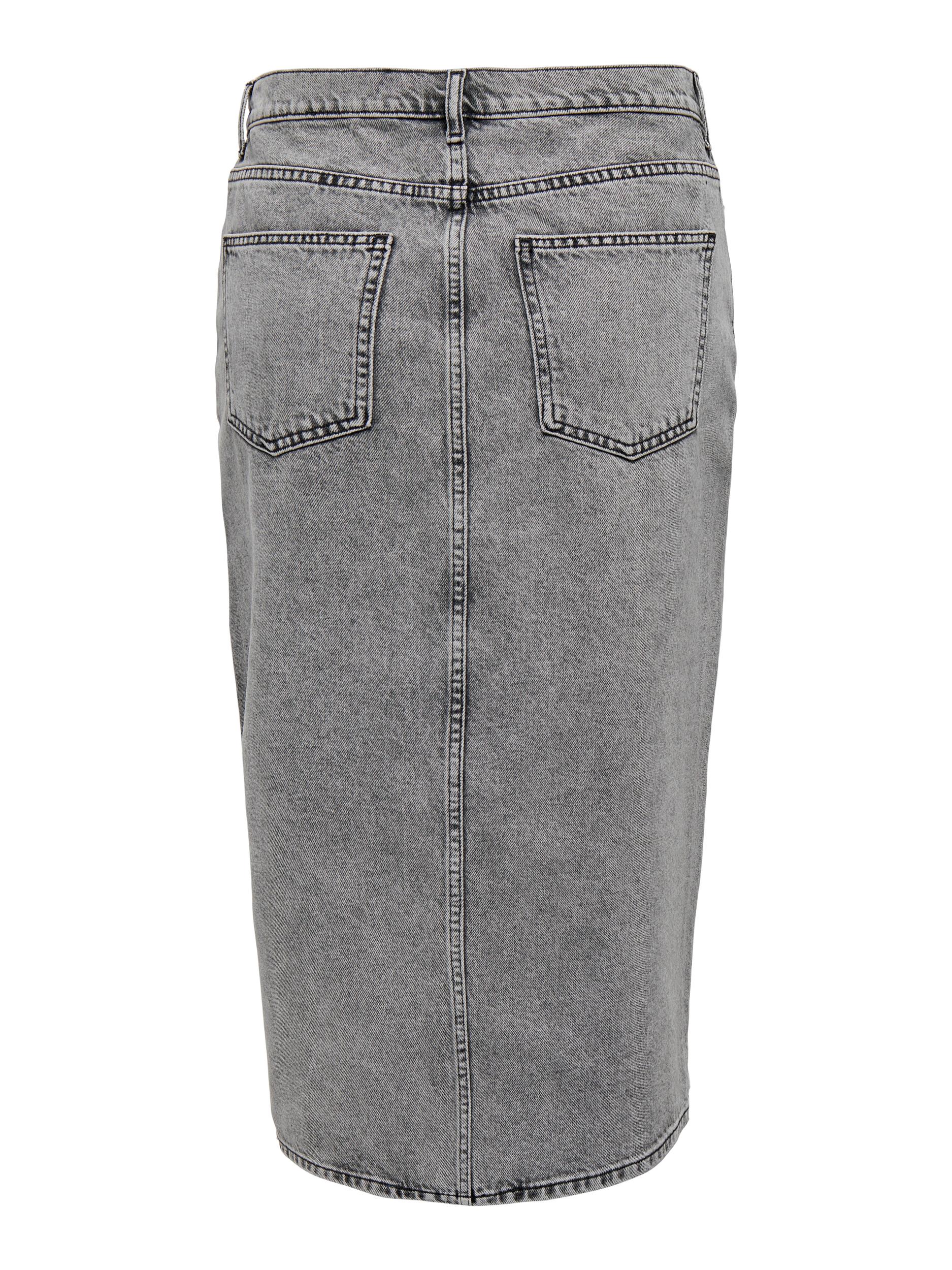 Gry Højtaljet Denimnederdel, Grey Denim Acid, S