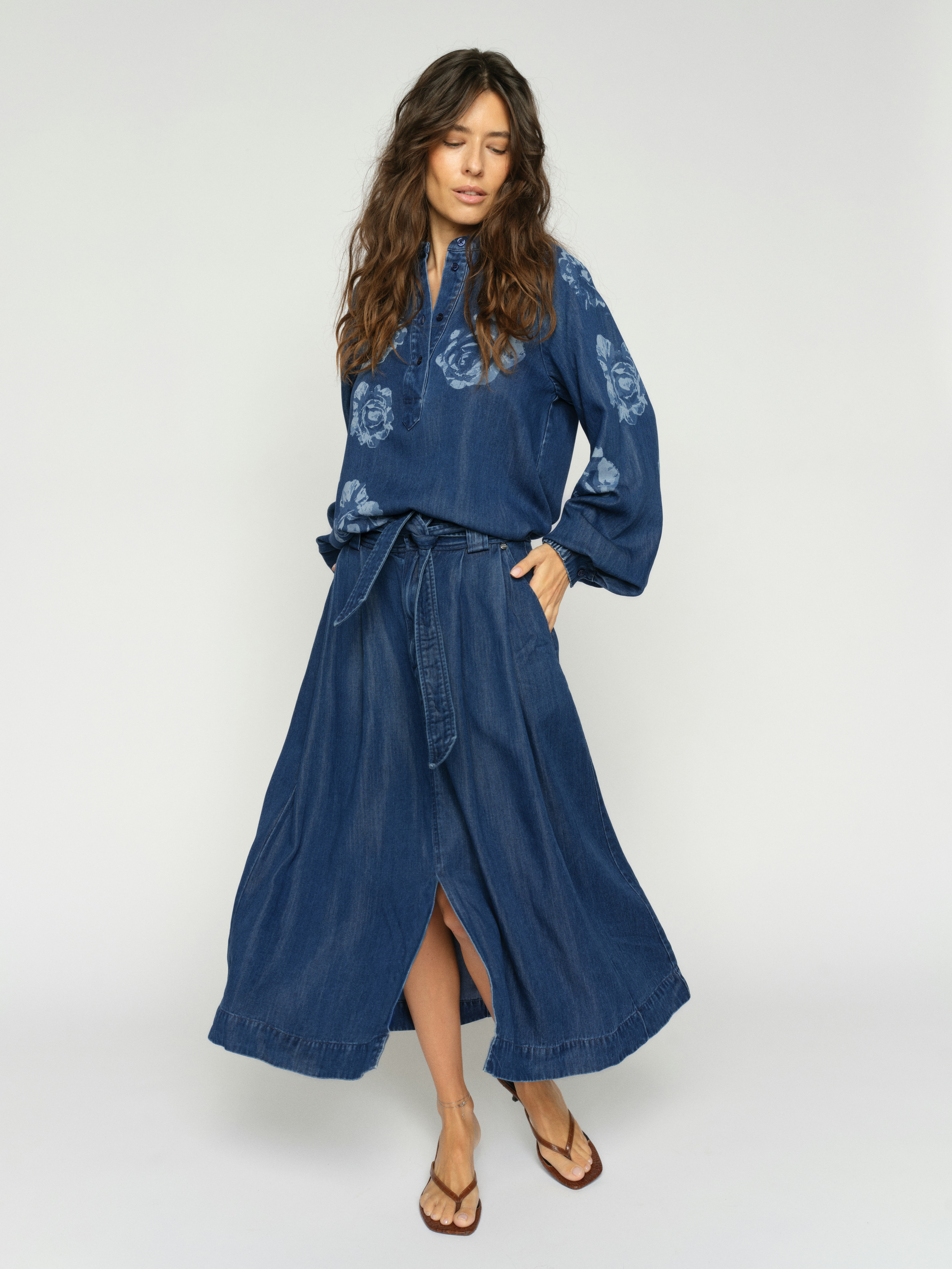 Mos Mosh præsenterer Koda Denim Nederdel, en alsidig og stilfuld denimnederdel, der er et ideelt valg til enhver garderobe. Nederdelen har en elegant midi-længde, der rammer lige under knæet, hvilket gør den velegnet til både hverdag og mere formelle anledninger. Med en slids foran tilføjer den et moderne twist og øger bevægelsesfriheden, hvad enten du er på arbejde eller ude i byen. Denne denimnederdel kommer med et bælte i taljen, der fremhæver din figur og giver mulighed for at justere pasformen efter behov. Praktiske lommer i siden giver både funktionalitet og et afslappet look, mens den løse pasform sikrer, at du føler dig komfortabel dagen lang. Mos Mosh har endnu en gang skabt en klassisk og tidløs beklædningsdel, der nemt kan styles op eller ned alt efter lejligheden. Koda Denim Nederdel er et must-have for den modebevidste, der sætter pris på kvalitet og design.