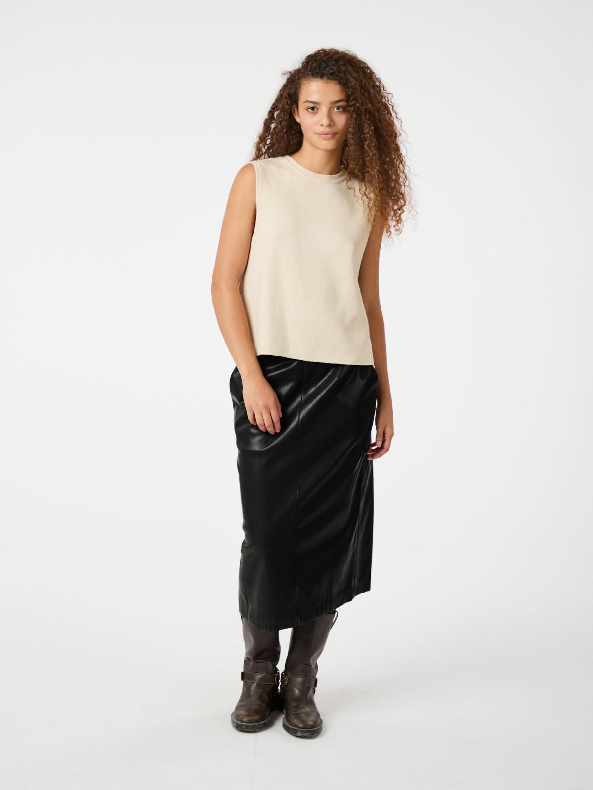 Nettie Faux Leather Nederdel, Black, 34
