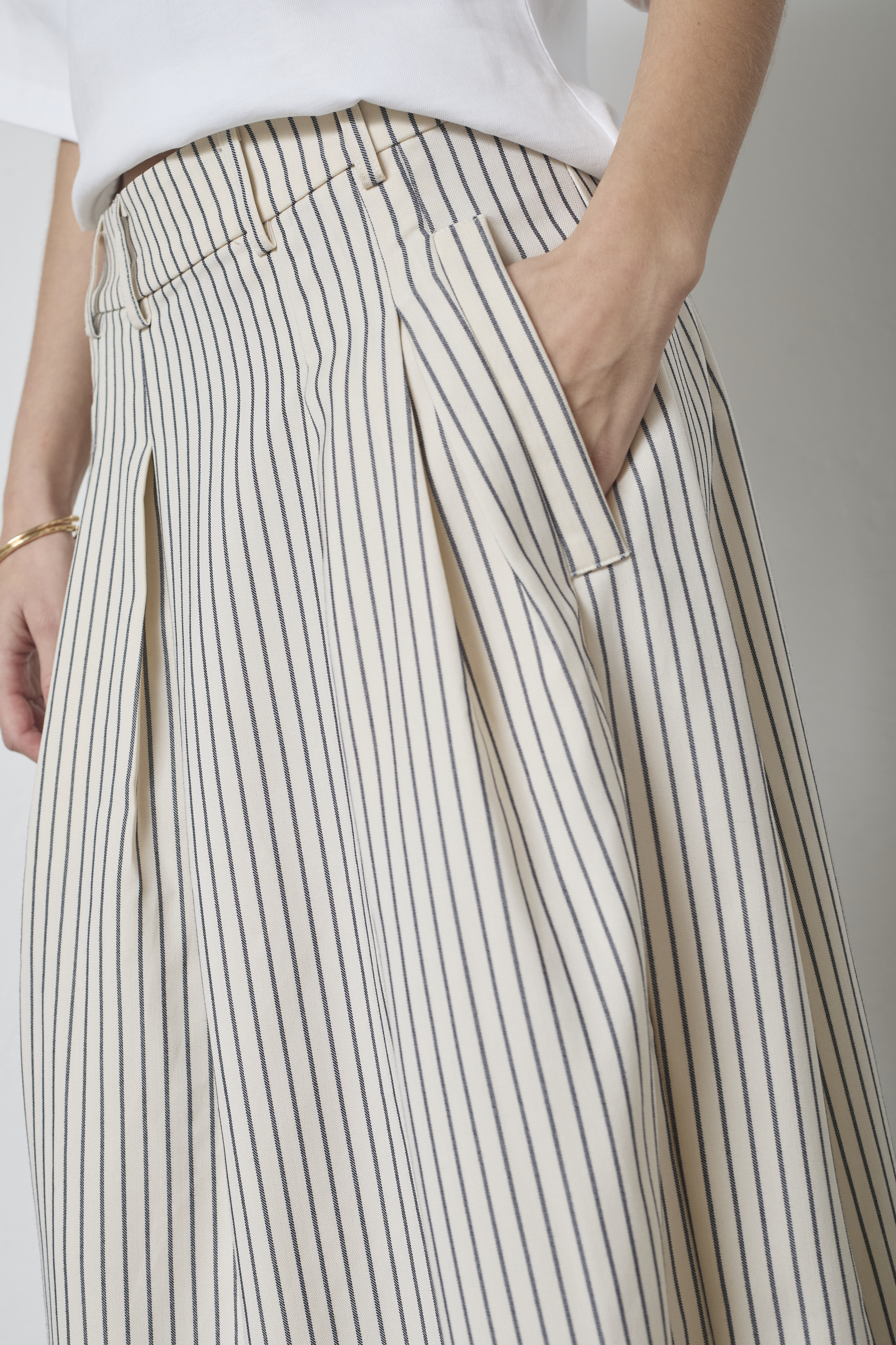 Praktiske detaljer som lommer i siden gør det nemt at bære småting, mens bæltestropperne giver mulighed for at tilføje et bælte og dermed personliggøre looket yderligere. Nederdelen er forsynet med en lynlåslukning bagpå, hvilket gør det nemt at tage den af og på. De fine læg både foran og bagpå tilføjer en delikat dimension til designet, hvilket gør denne nederdel til et stilfuldt valg til både hverdag og festlige anledninger. En alsidig nederdel, der kombinerer komfort og stil på bedste vis.