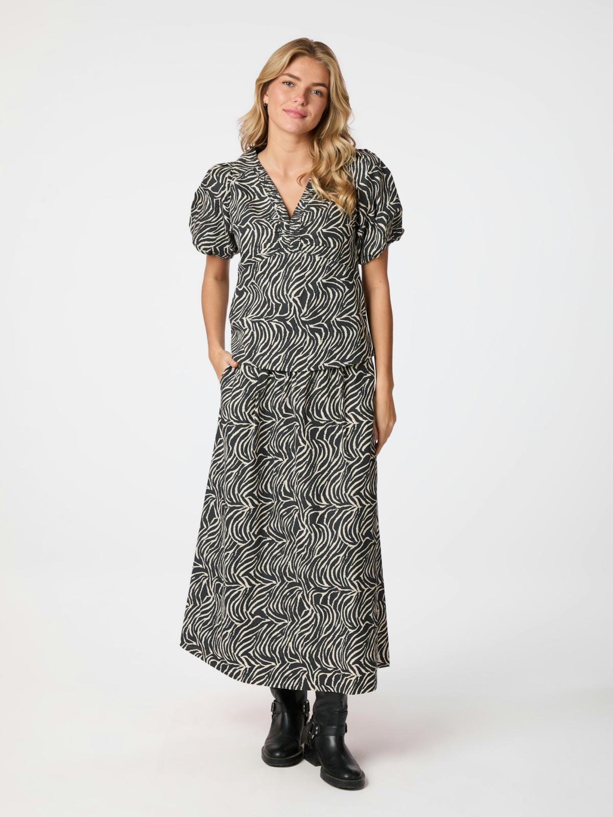 Yara Zebra Long Nederdel, Black, 34