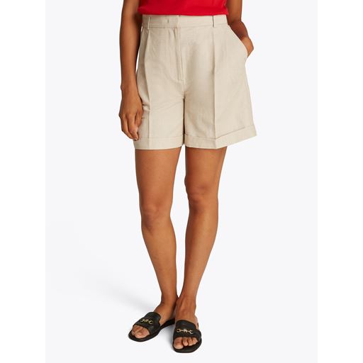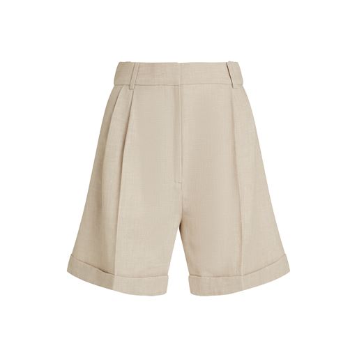 Linen Mix Pleated Shorts, Classic Beige, 42