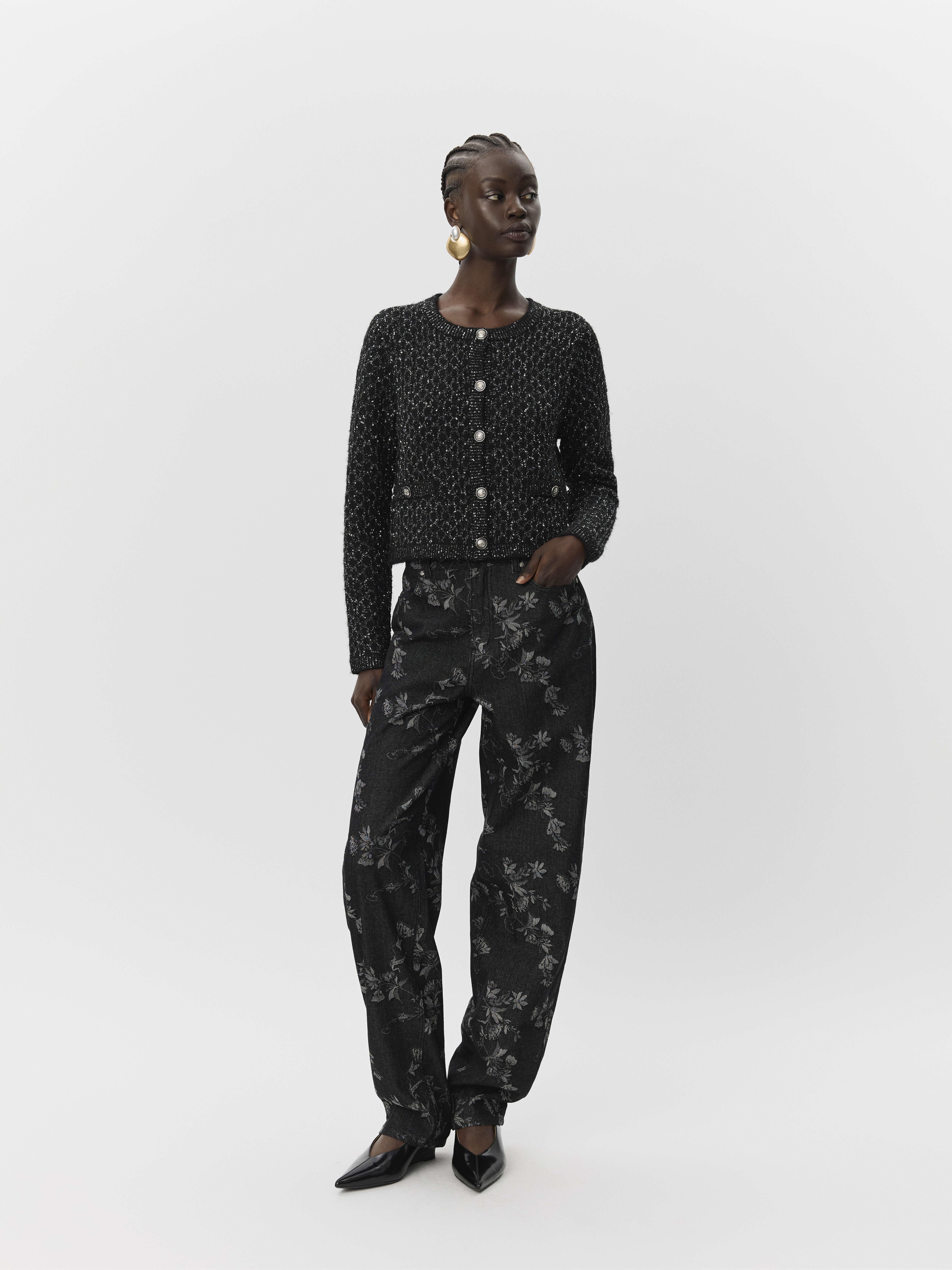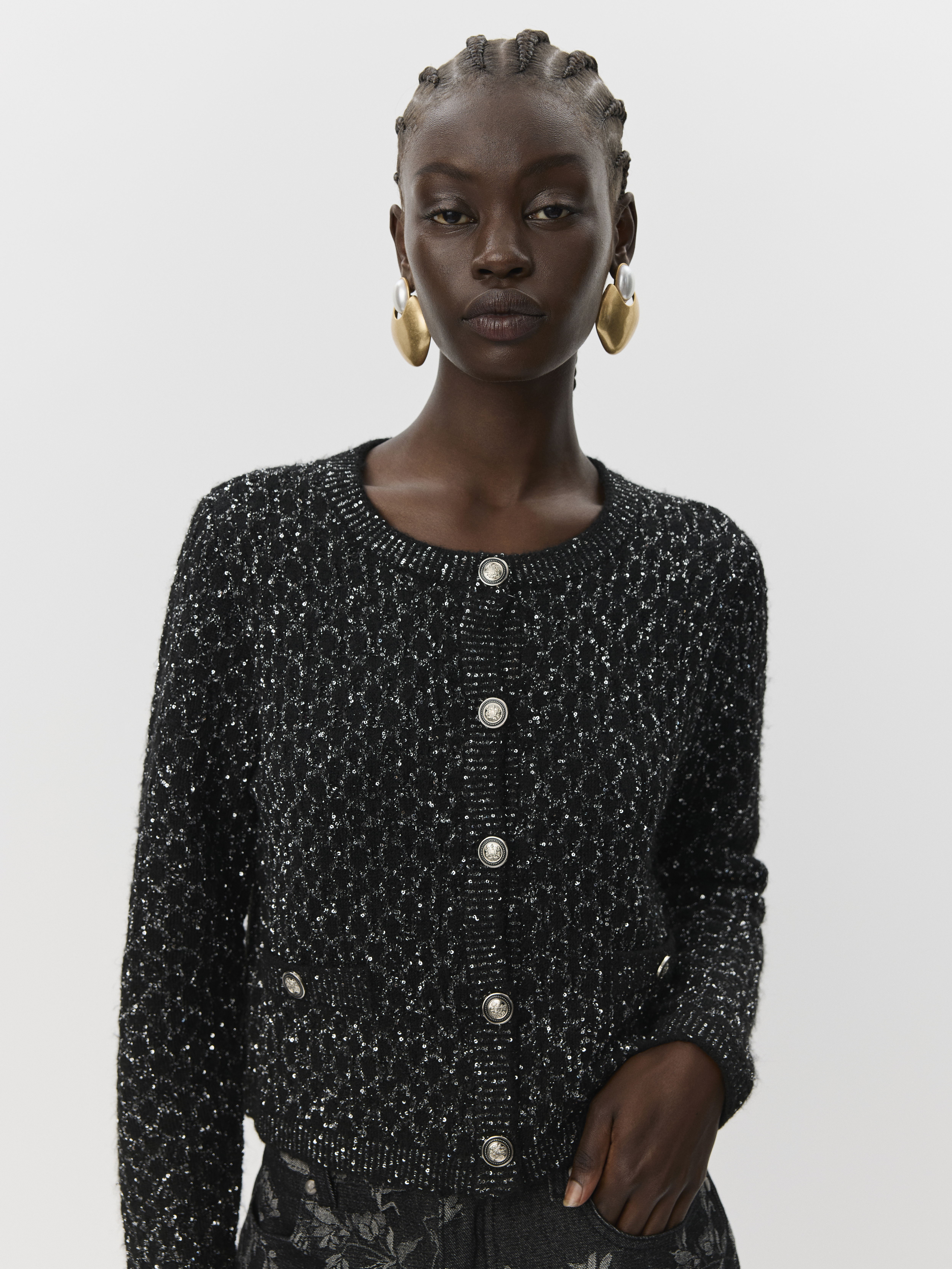 CarnetSW Cardigan fra Sofie Schnoor er det perfekte valg til dig, der ønsker en stilfuld og moderne tilføjelse til din garderobe. Denne elegante cardigan er designet med en langærmet struktur, der gør den ideel til lag-på-lag styling i de køligere måneder. Med en rund halsudskæring tilbyder den et klassisk look, der nemt kan kombineres med forskellige outfits. Materialet er beriget med en subtil glimmer, der tilføjer et strejf af glamour til dit look, og gør cardiganen perfekt til både dag- og aftenbrug. Den korte model sikrer en moderne silhuet, der harmonerer flot med højtaljede bukser eller nederdele. Cardiganens knaplukning giver mulighed for at bære den både åben og lukket, alt efter hvad du foretrækker. Ribkanten afslutter designet med et pænt og stilrent finish, mens den almindelige pasform sikrer komfort hele dagen.