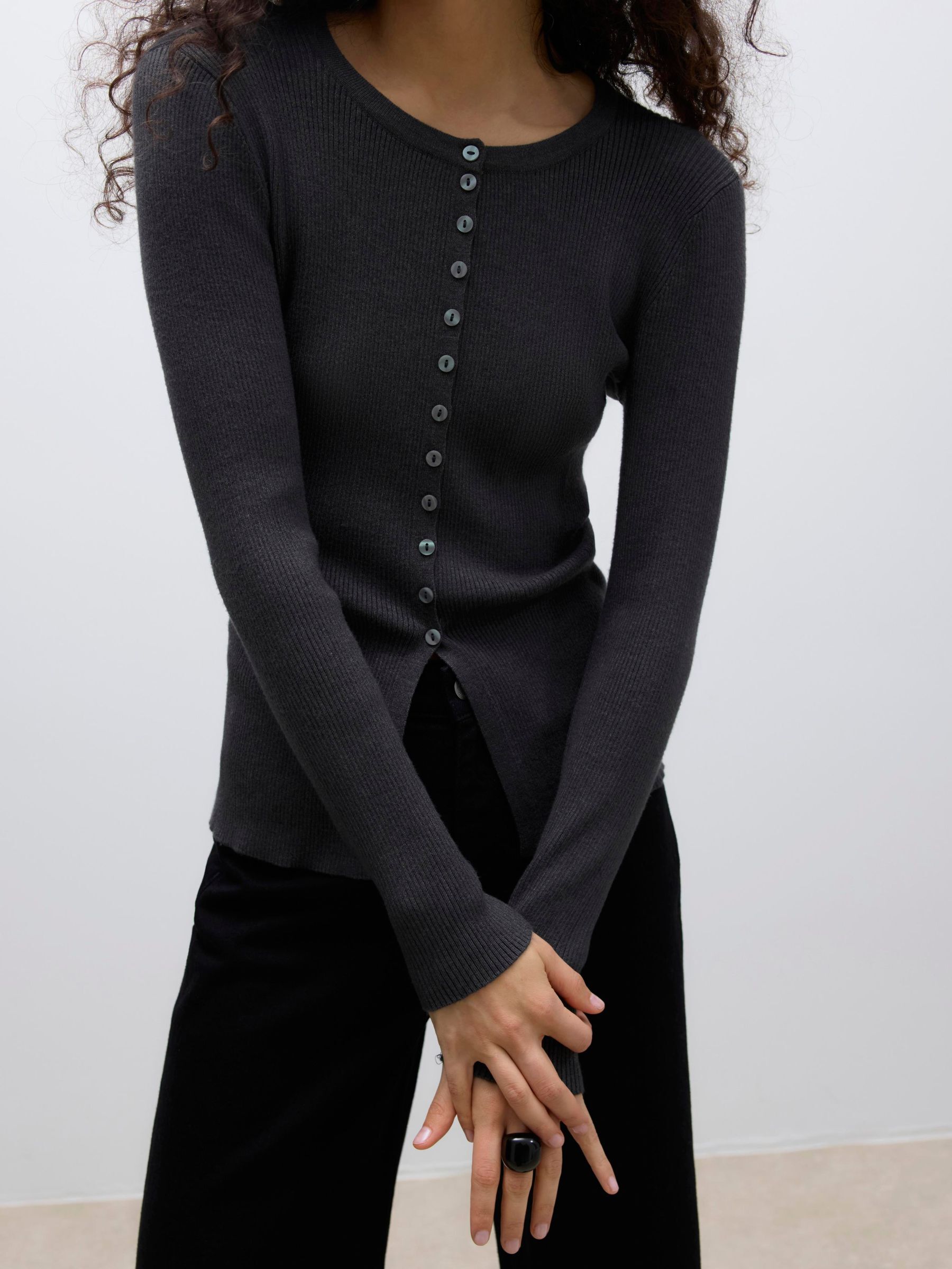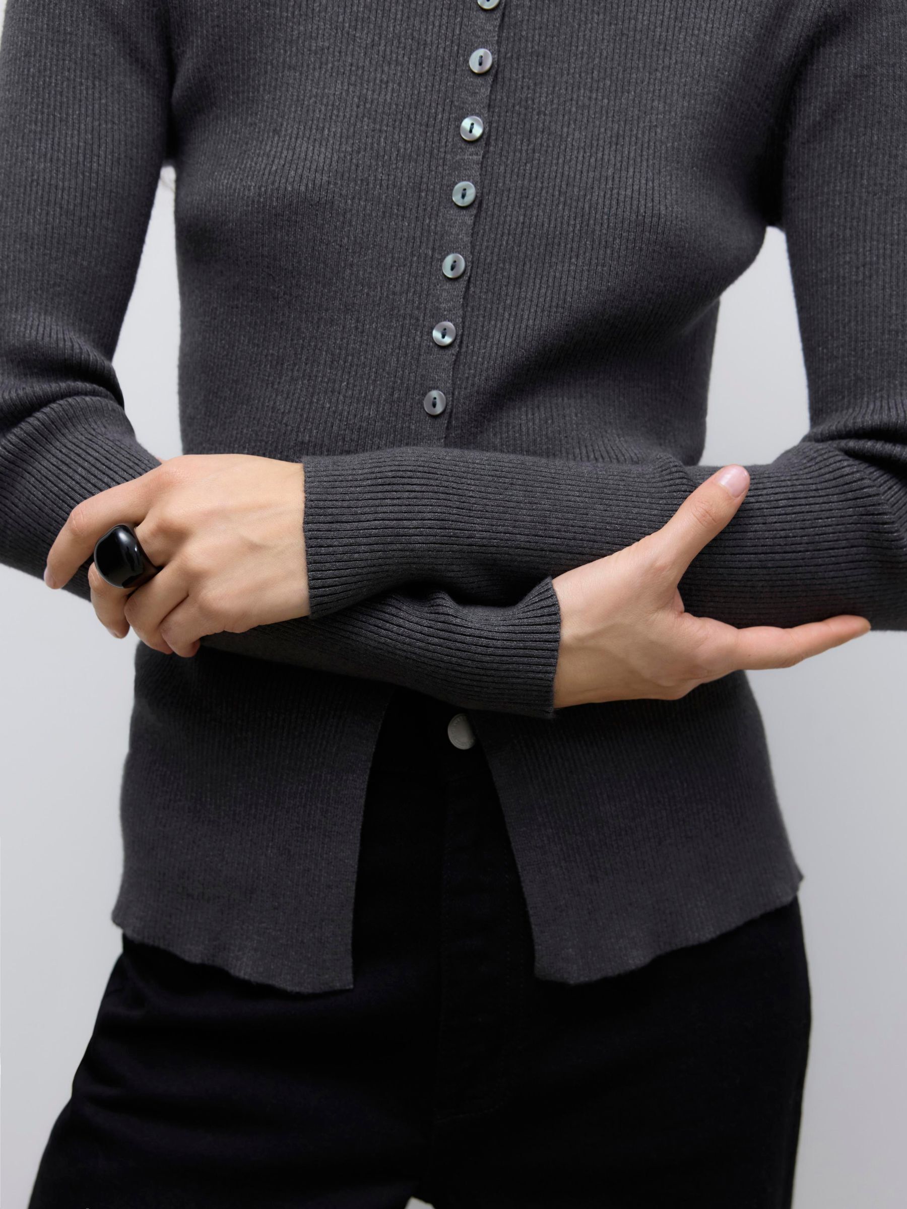Ukino Knit Cardigan, Dark Grey Melange, M