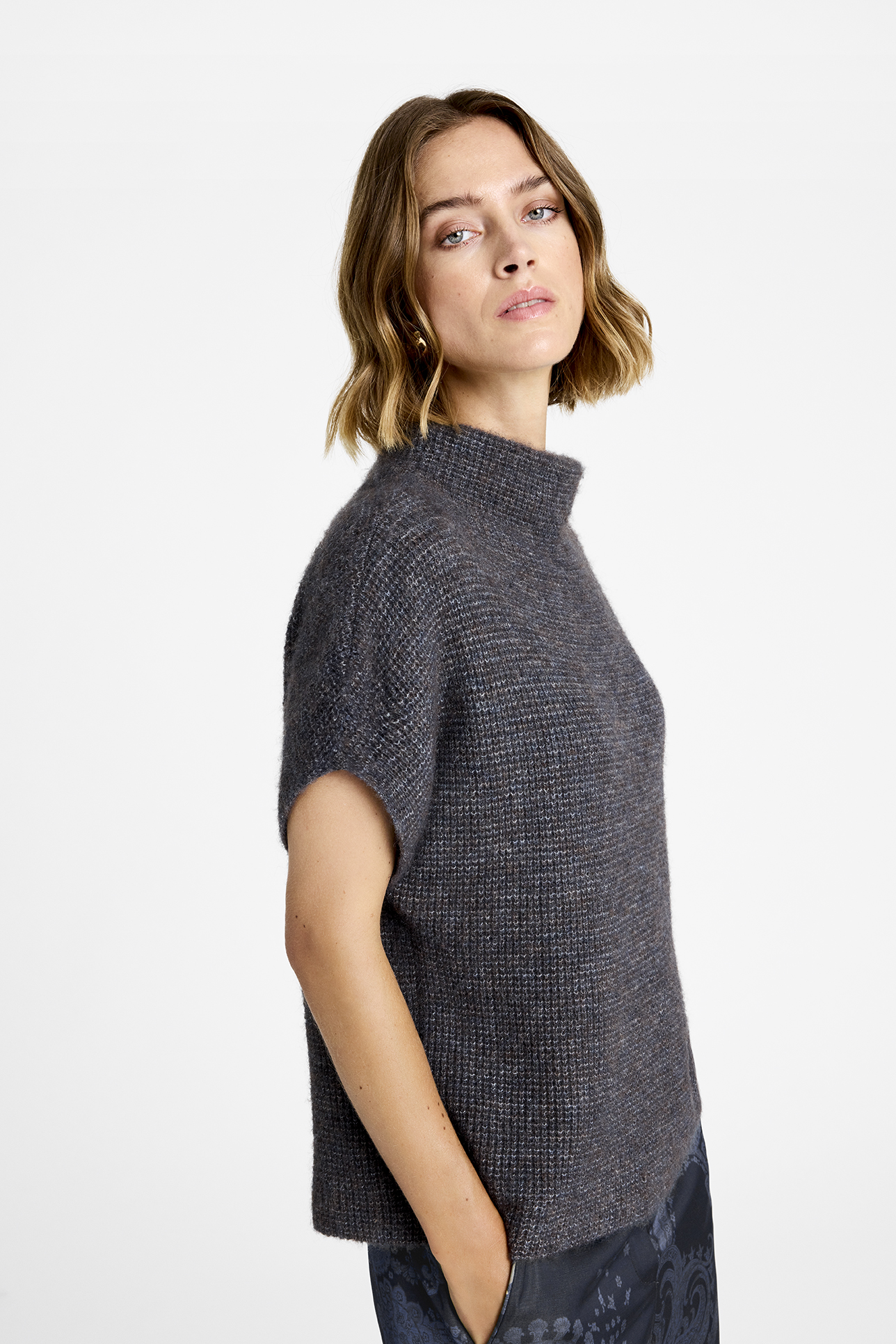 Coya strikblusen fra Gustav er et stilfuldt og alsidigt valg til enhver garderobe. Denne strikbluse kombinerer komfort og elegance, hvilket gør den ideel til både afslappede og mere formelle anledninger. Den er designet med en høj hals, der tilføjer et sofistikeret touch og giver ekstra varme på kølige dage. Blusen er kortærmet, hvilket gør den perfekt til lag-på-lag eller til at bære alene i de varmere måneder. Den afslappede pasform sikrer, at den sidder behageligt på kroppen, mens den stadig fremhæver din figur på en flatterende måde. Med sit enkle, men elegante design, er Coya strikblusen et must-have for dem, der sætter pris på tidløse stykker med et moderne twist.