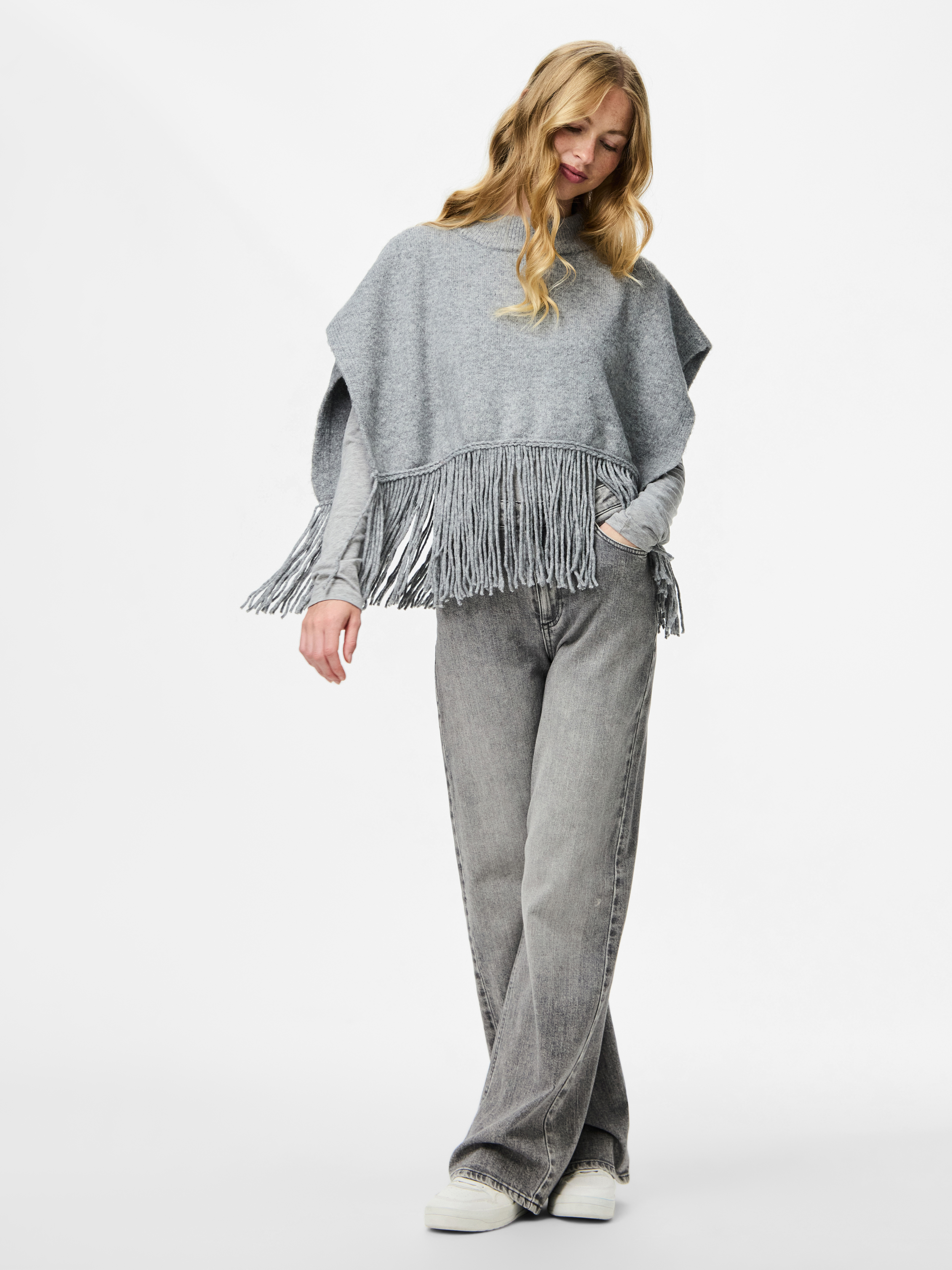 Oplev den stilfulde Julle Poncho fra Pieces, som tilbyder både komfort og elegance til din garderobe. Denne poncho er designet med en høj hals, der tilføjer et sofistikeret touch og samtidig holder dig varm på kølige dage. Med dens karakteristiske frynser nederst får du et moderne og legende look, der skiller sig ud.