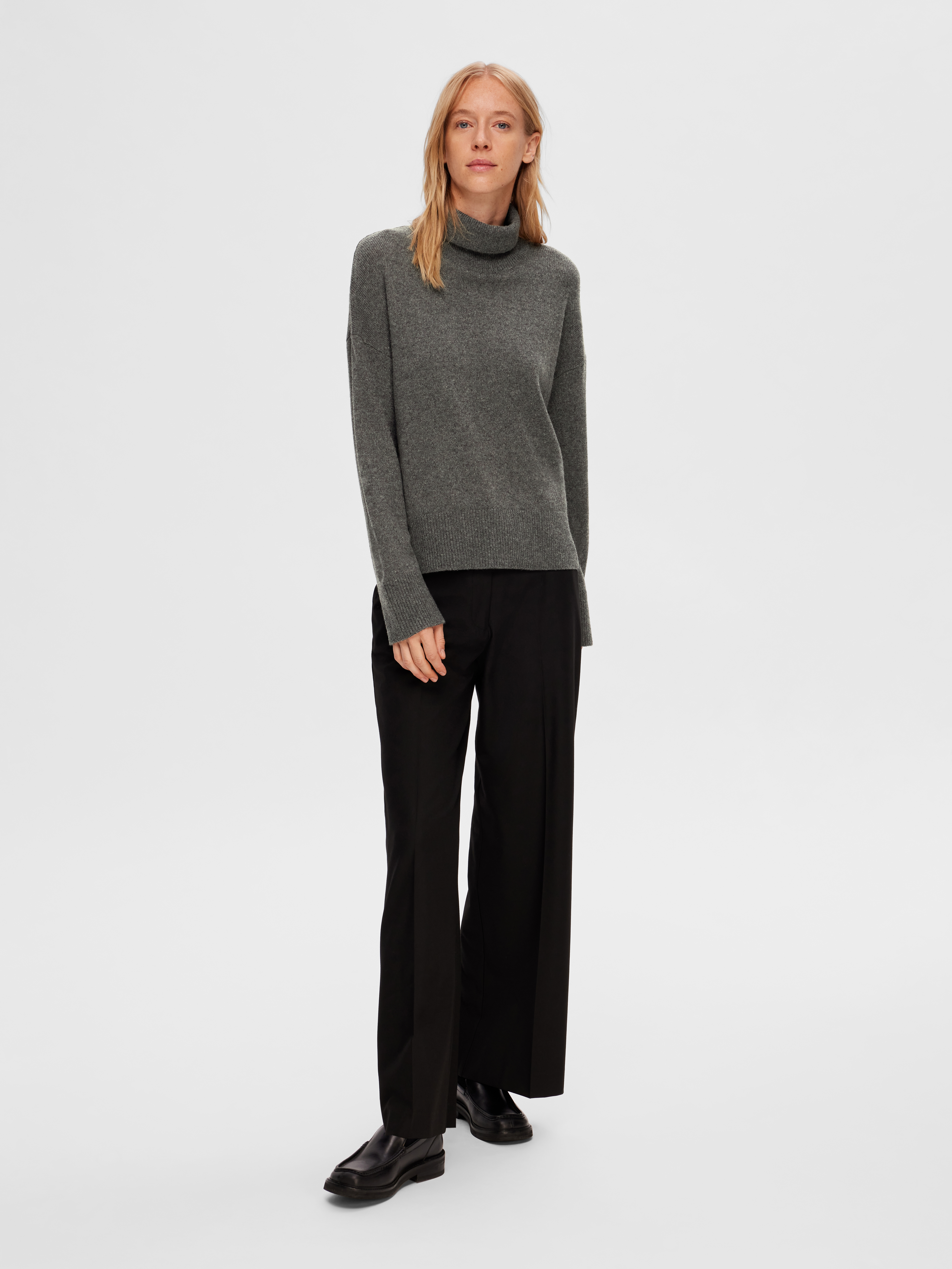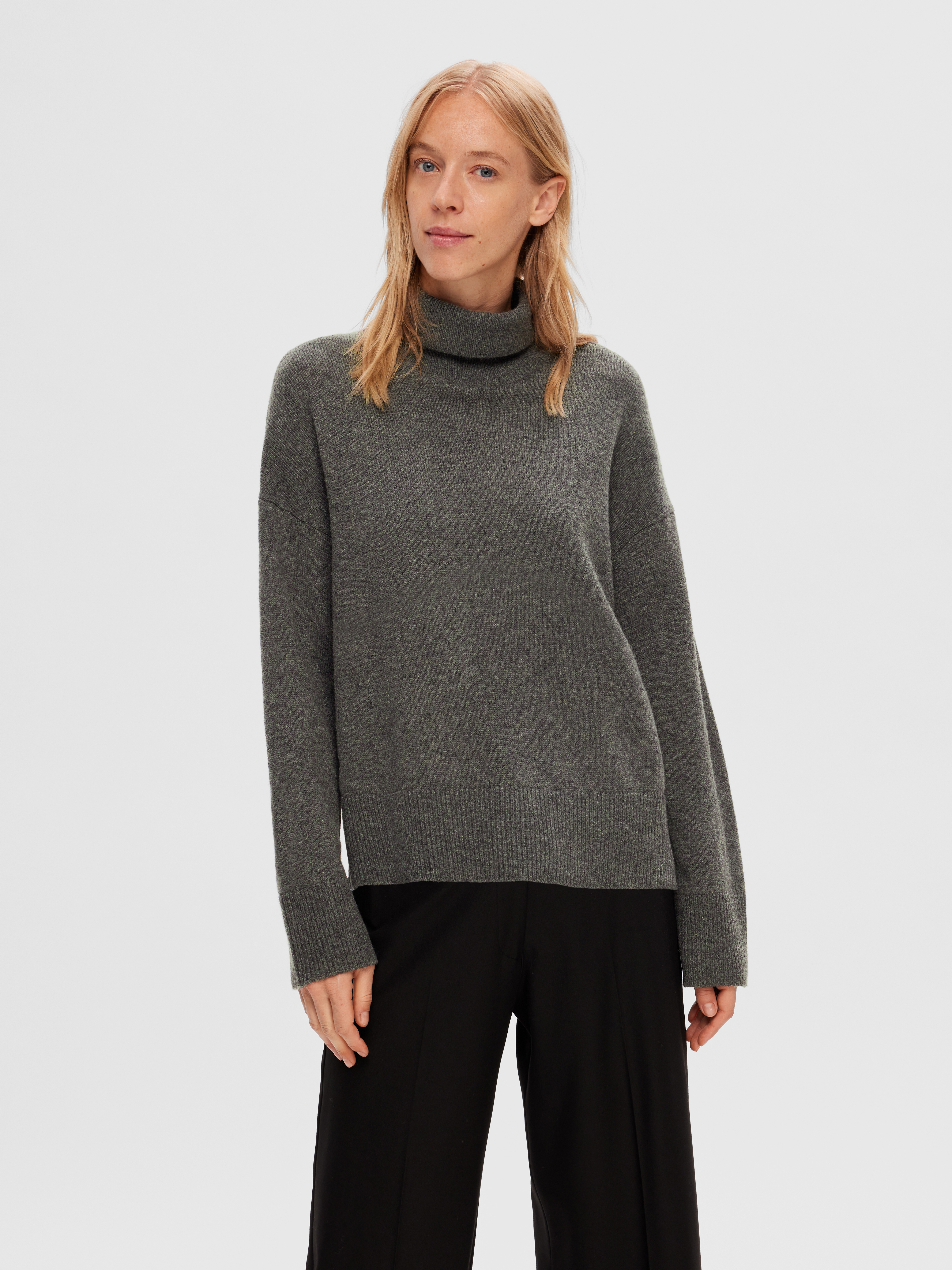 Lara Roll Neck Striktrøje, Medium Grey Melange, XL