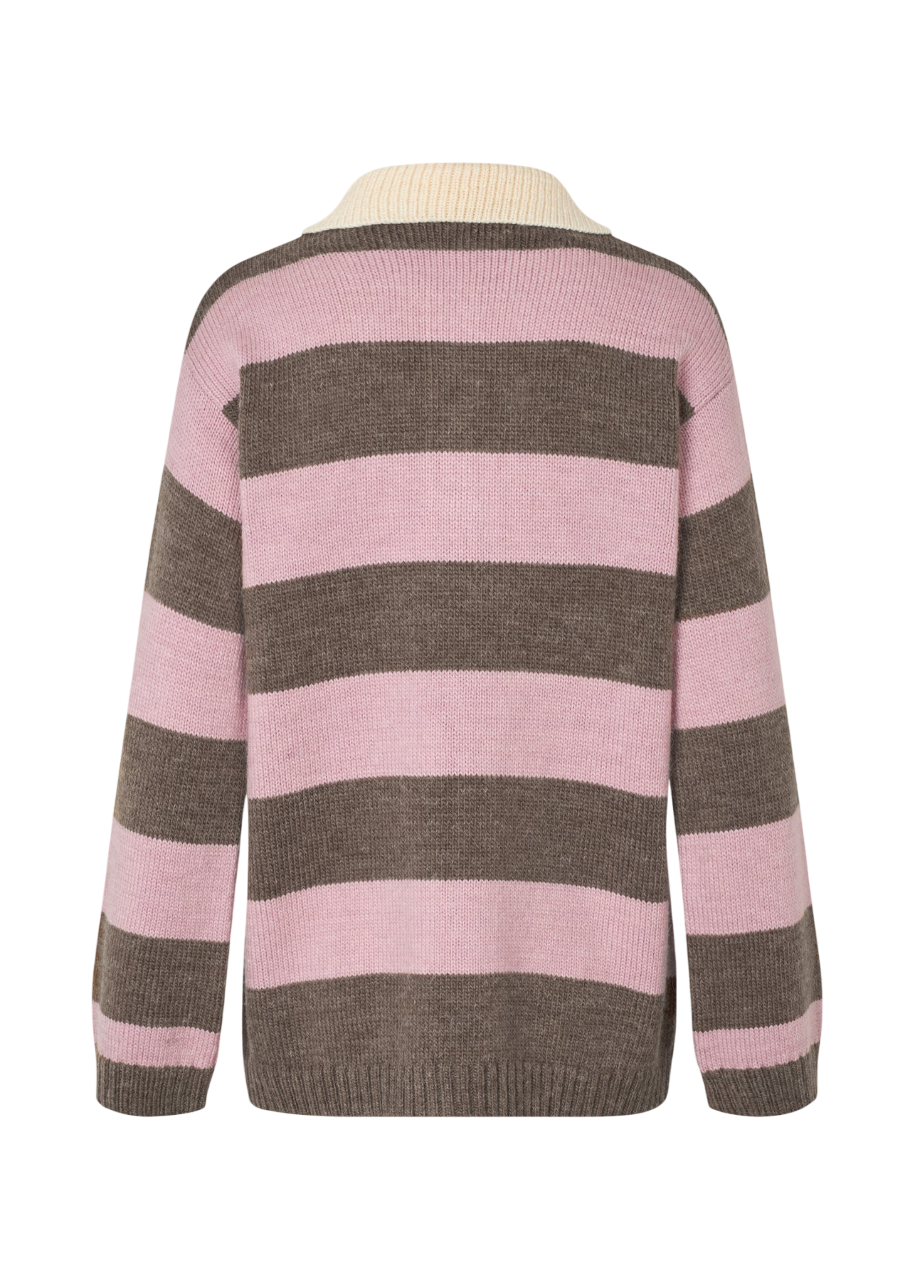 Oplev komfort og stil med PelhamMD Stripe Polo Striktrøje fra Modström – en striktrøje, der er designet til at imponere. Denne langærmede model kombinerer klassiske og moderne elementer, hvilket gør den til et alsidigt valg til garderoben. Den har en elegant polokrave, der tilfører et sofistikeret touch, mens det stribede mønster giver et unikt og iøjnefaldende udtryk. Striktrøjen er designet med en sænket skuldersøm, der sikrer en behagelig og afslappet pasform. Med ribkant på både ærmer og forneden, holdes formen flot og stilren. Knaplukningen ved halsen tilføjer en ekstra detalje, der gør det muligt at justere looket efter behov. Denne oversize pasform er ideel til dem, der sætter pris på både komfort og stil, hvilket gør trøjen perfekt til hyggelige dage eller som et smart lag i et lag-på-lag look. PelhamMD Stripe Polo Striktrøje er et must-have til enhver modebevidst garderobe.