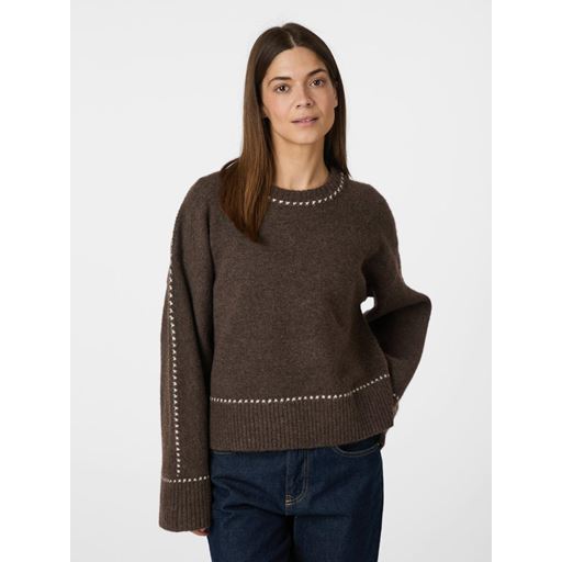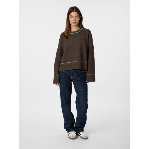 Roeme Knit Stitch Striktrøje, Brown Melange, 40