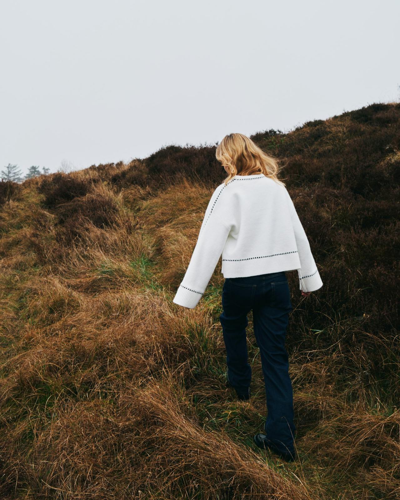 Roeme Knit Stitch Striktrøje, Off White, 38