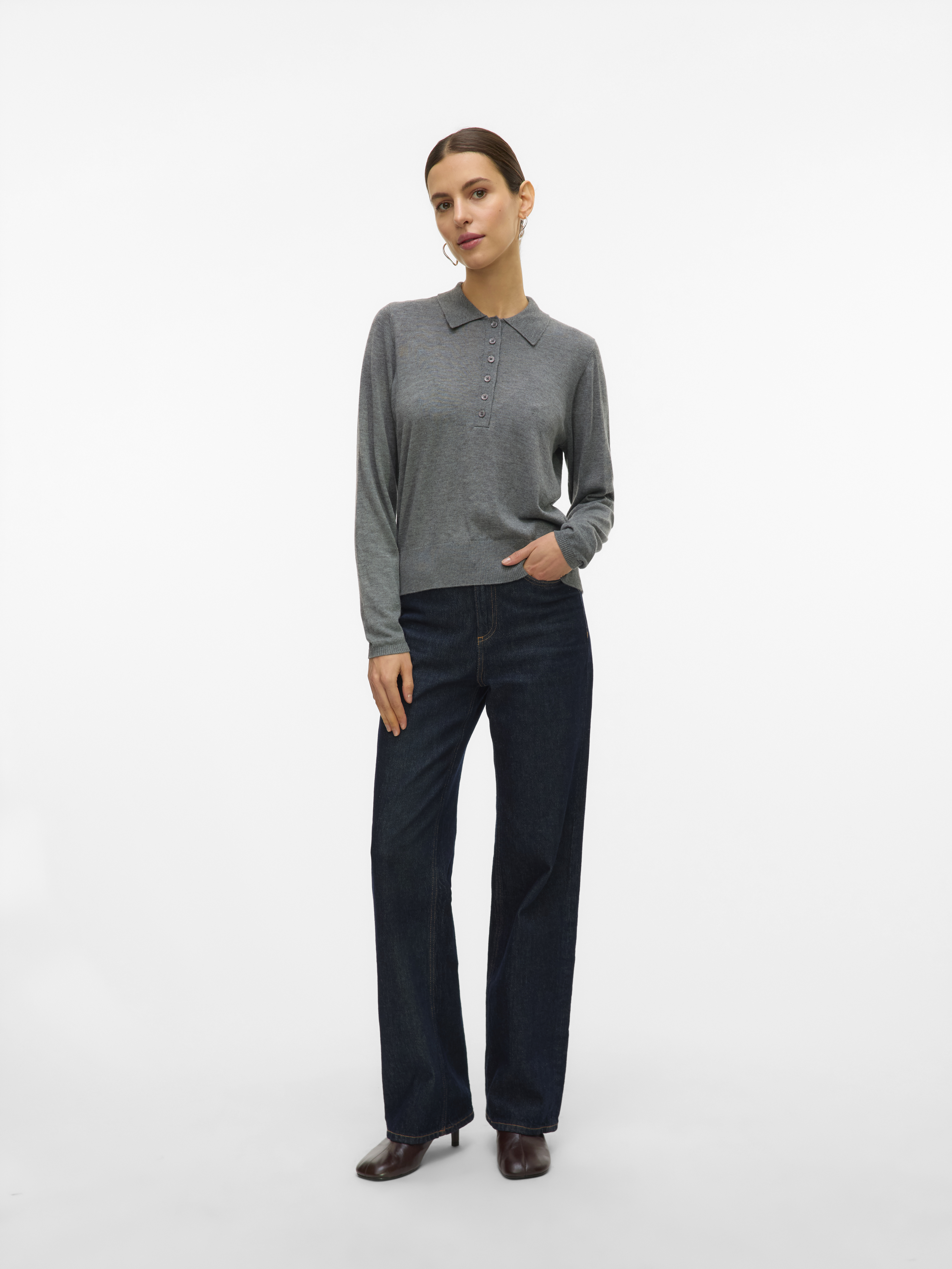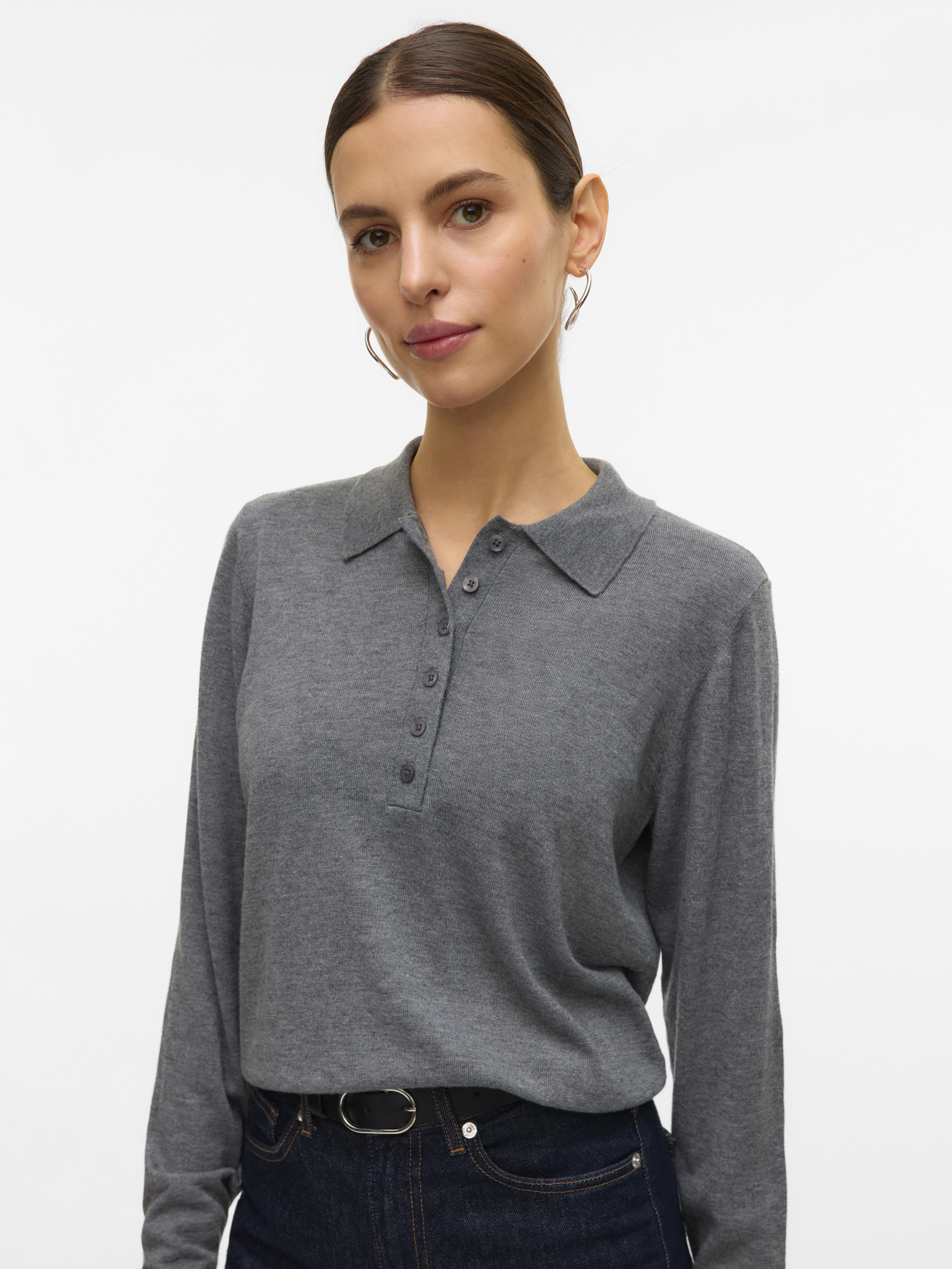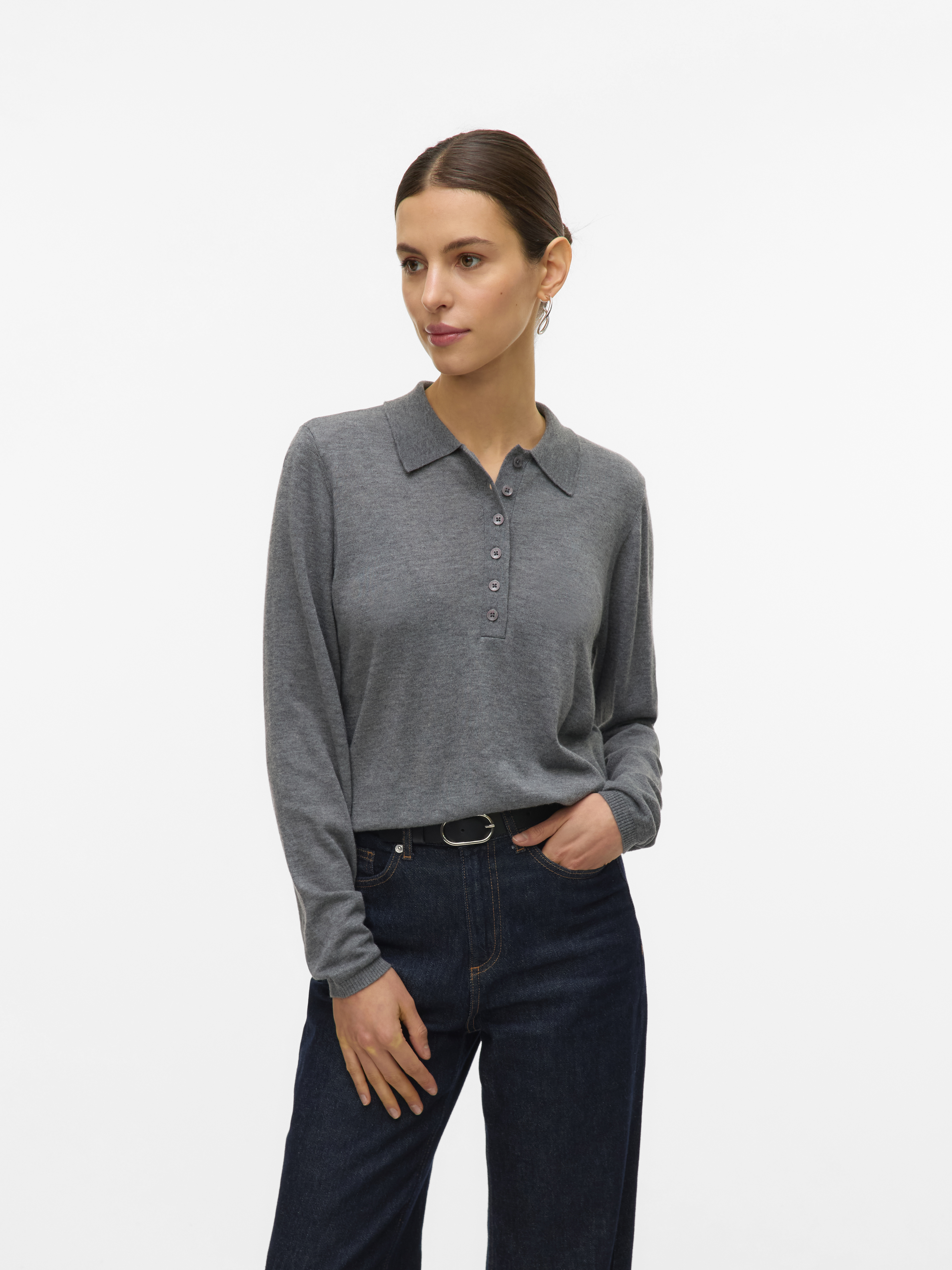 Sikita Polo Striktrøje, Medium Grey Melange, S