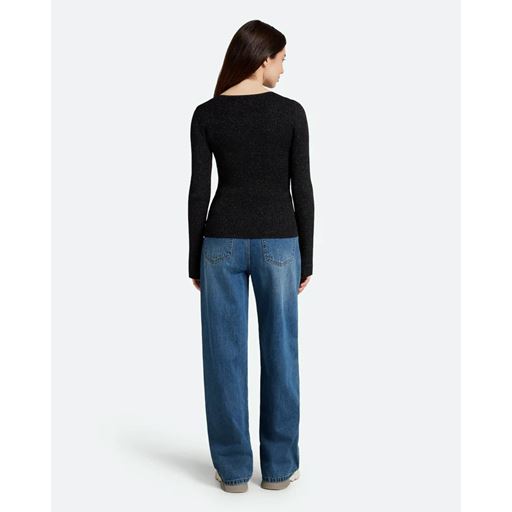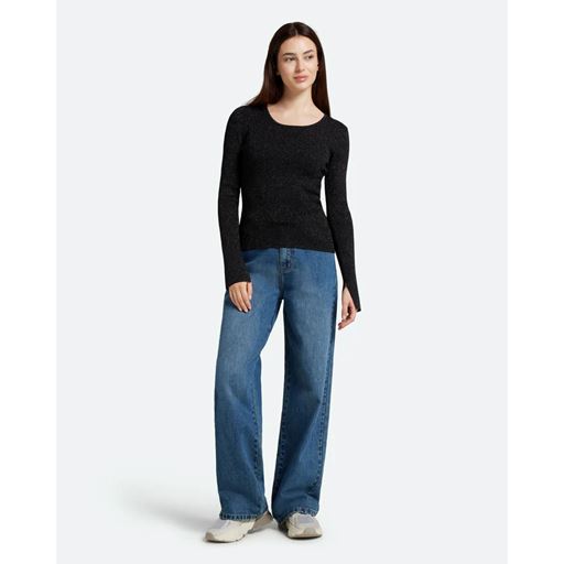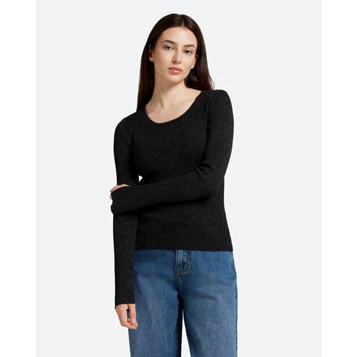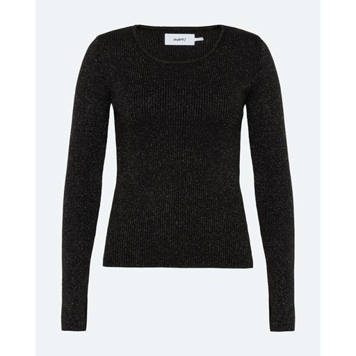 Twisti O-neck Strikbluse, Black, S