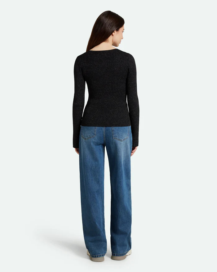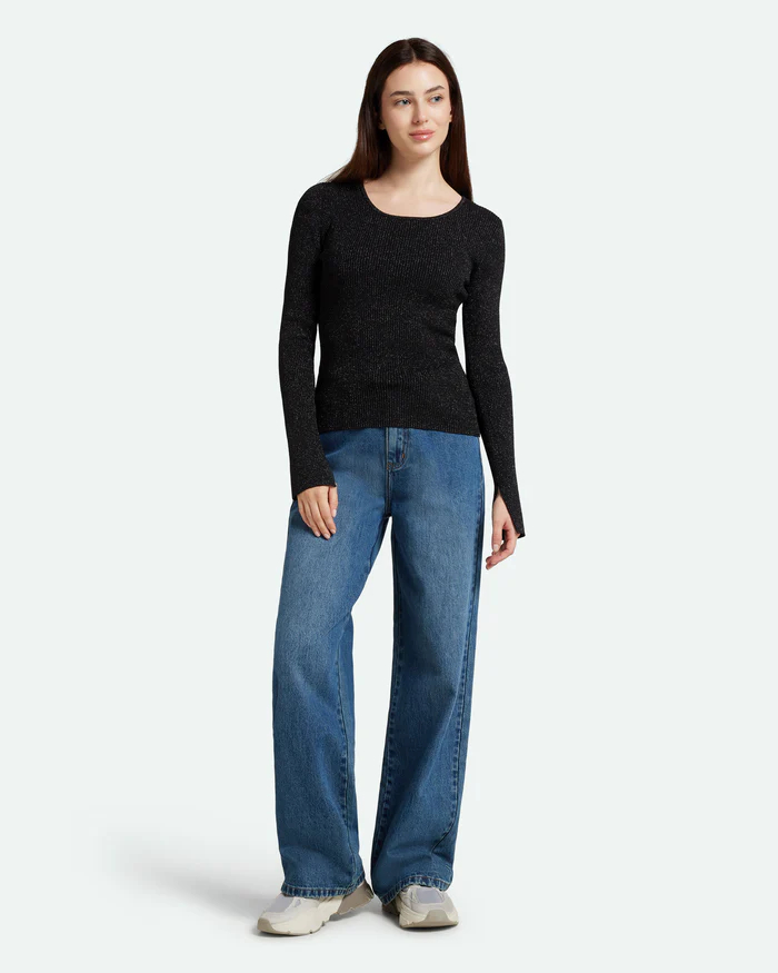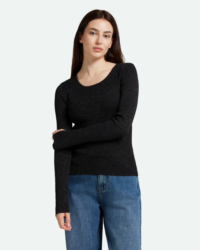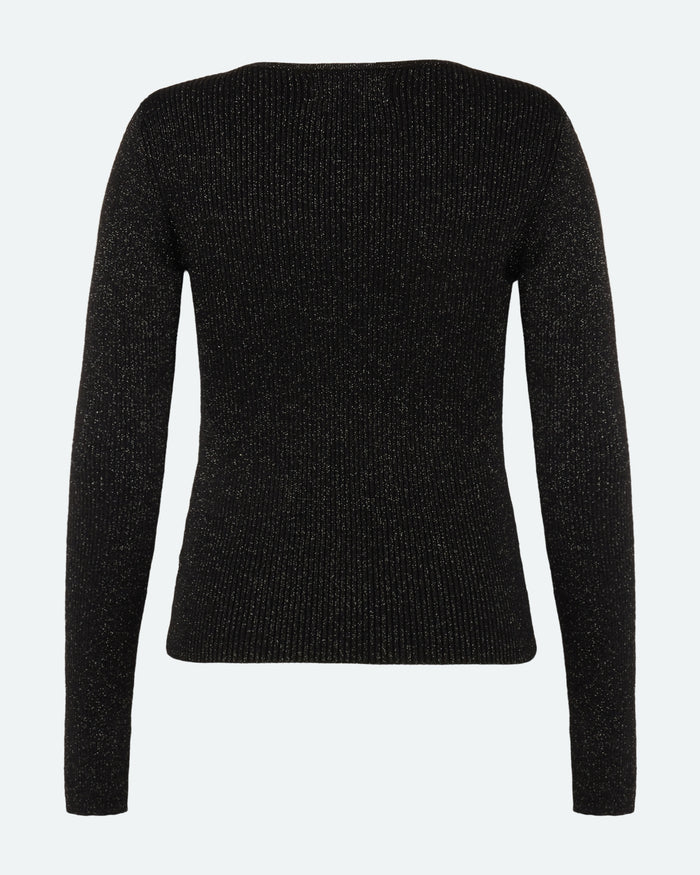 Twisti O-neck Strikbluse, Black, S