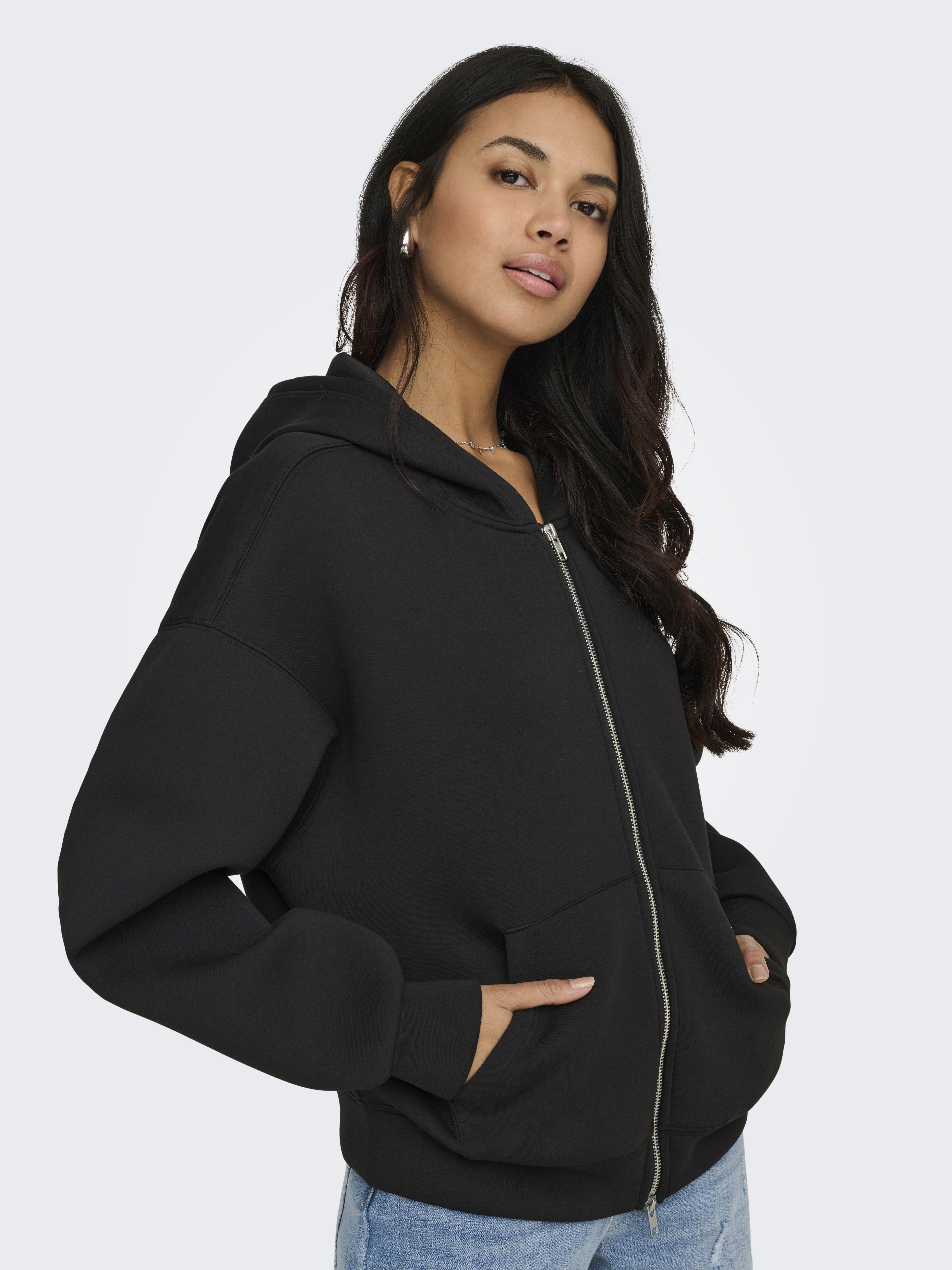 Naomi Two-Way Zip Hættetrøje, Black, XL