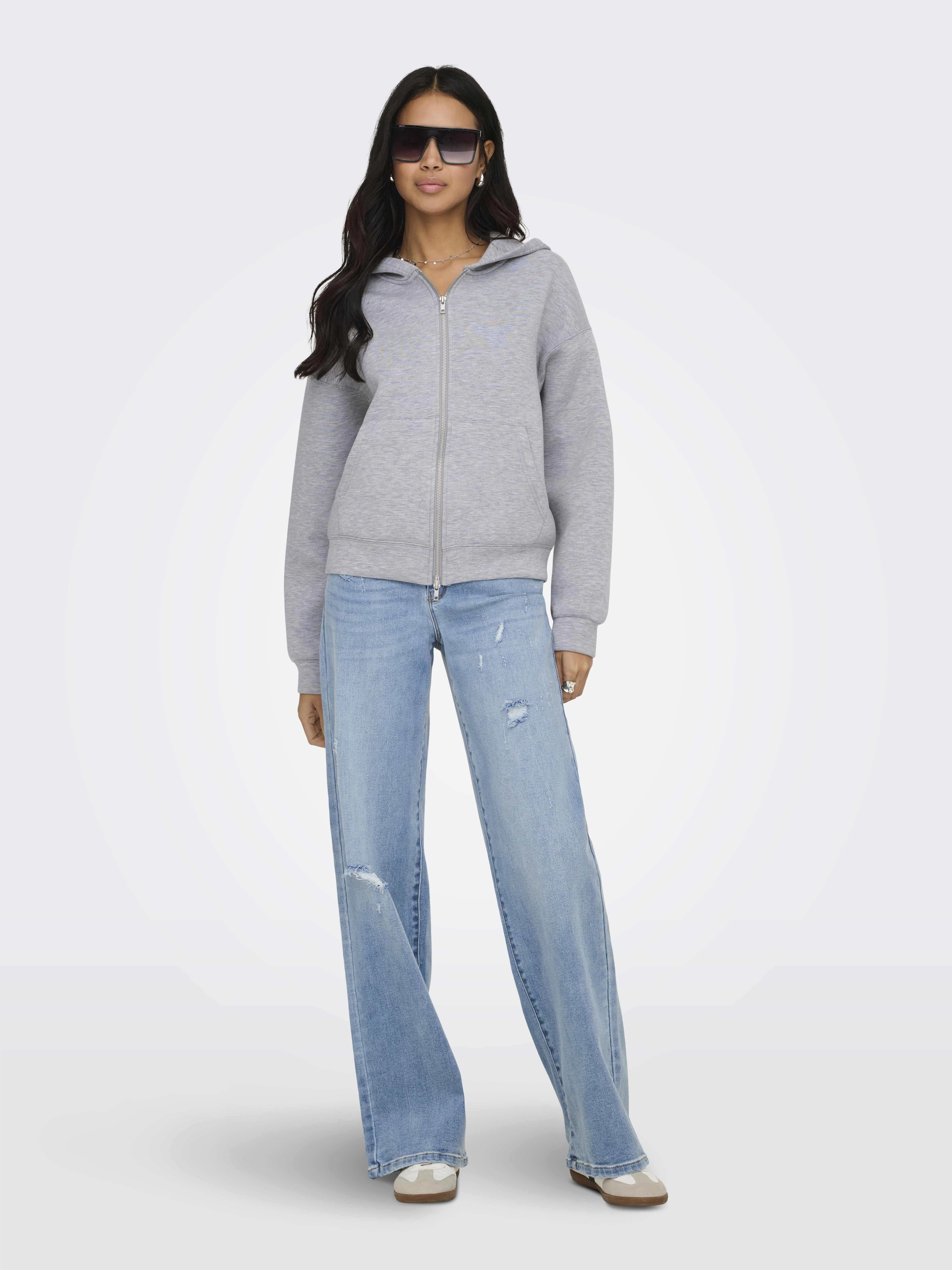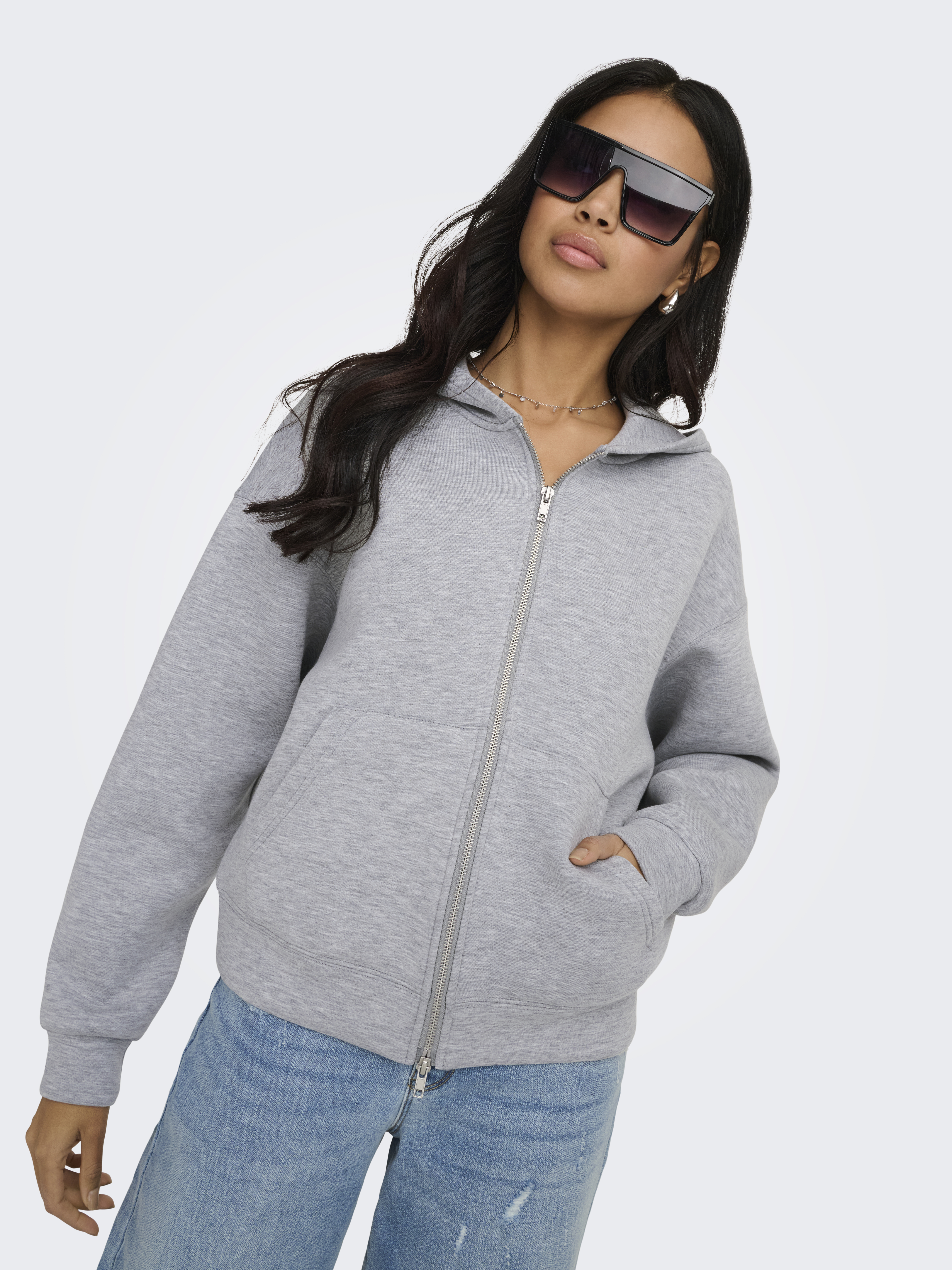Naomi Two-Way Zip Hættetrøje, Light Grey Melange, XL