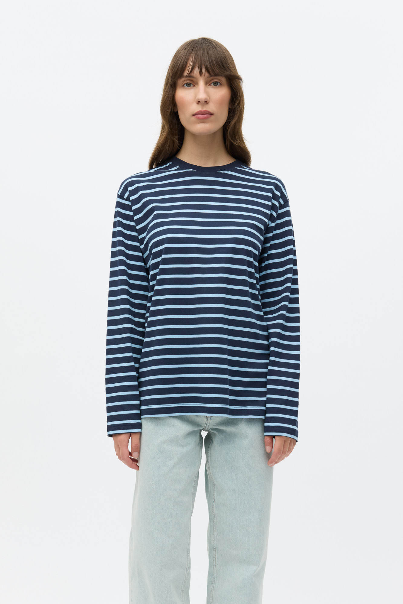 Enkulla Langærmet T-shirt, Navy Powder Blue Stripe, M