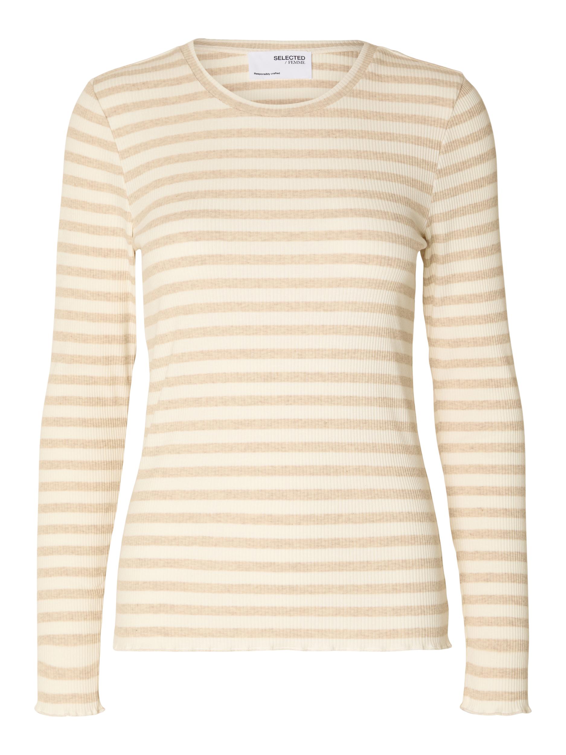 Fanna Langærmet T-shirt, Oatmeal Snow White Stripes, XS