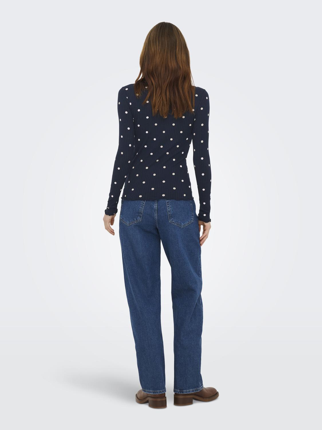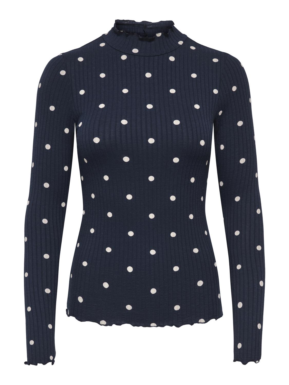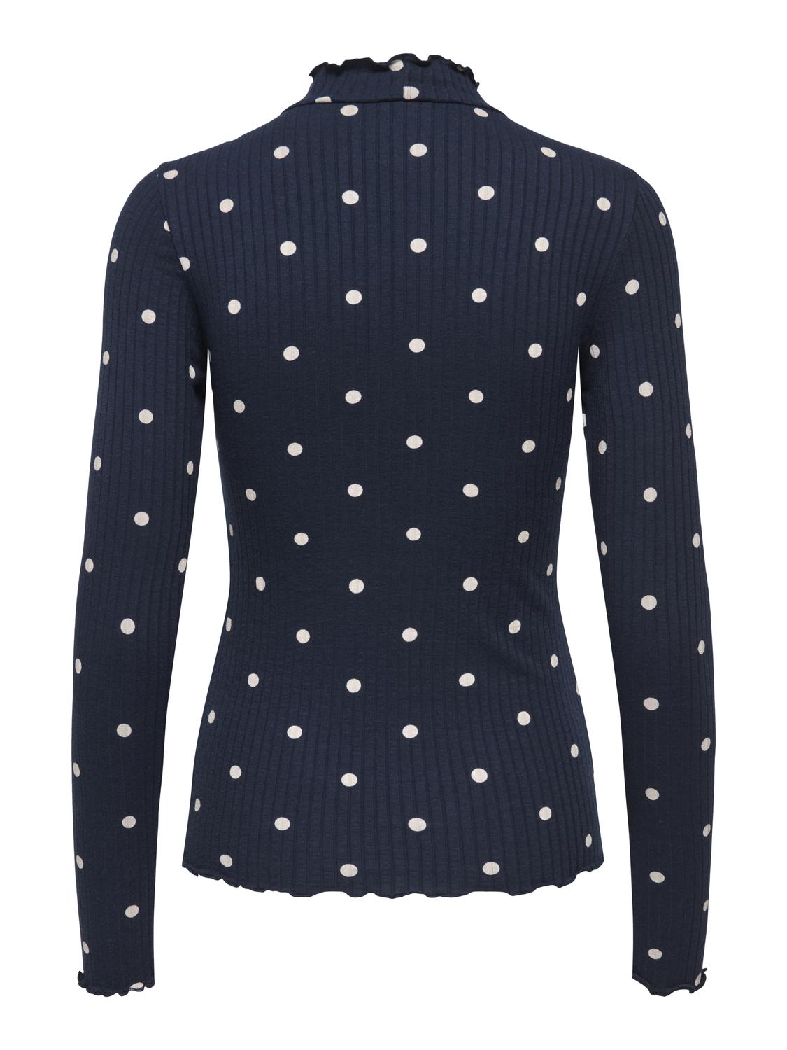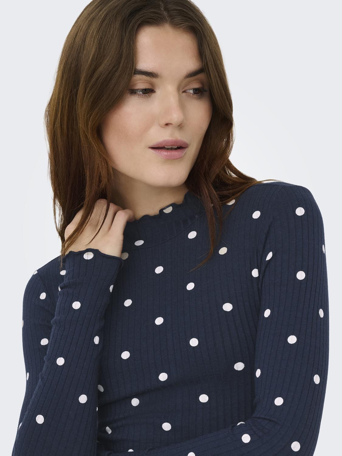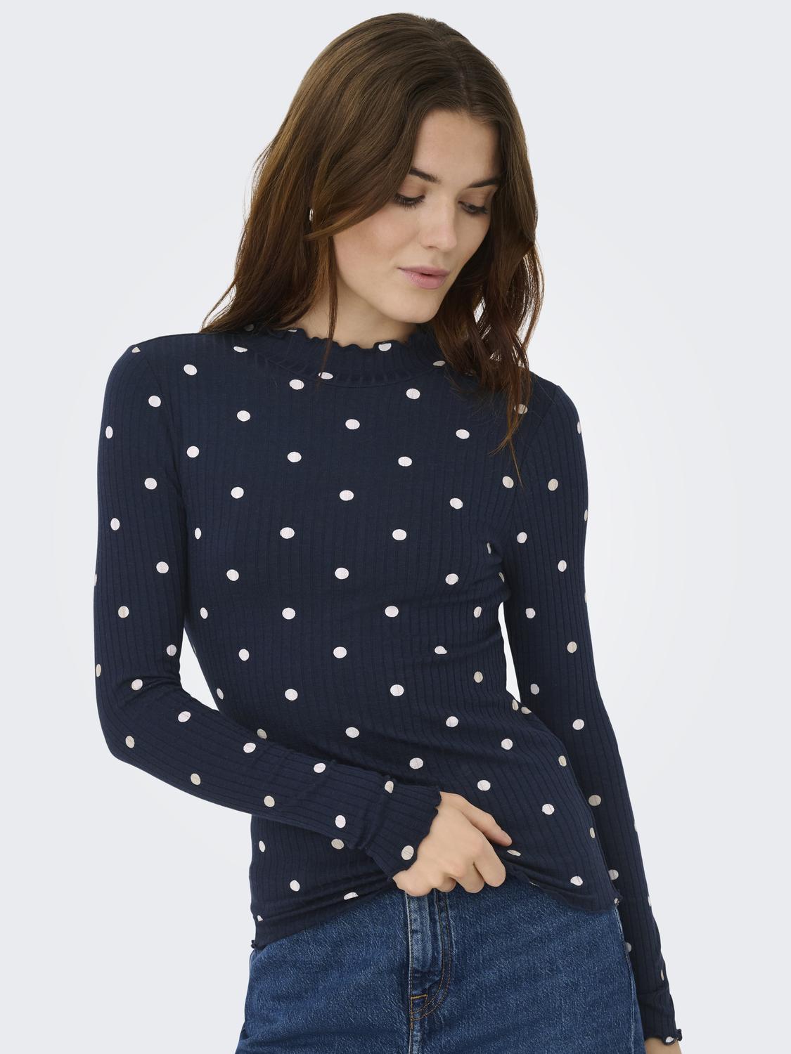 Fransiska Life Langærmet Højhalset Bluse, Sky Captain Sandshell Dots, M