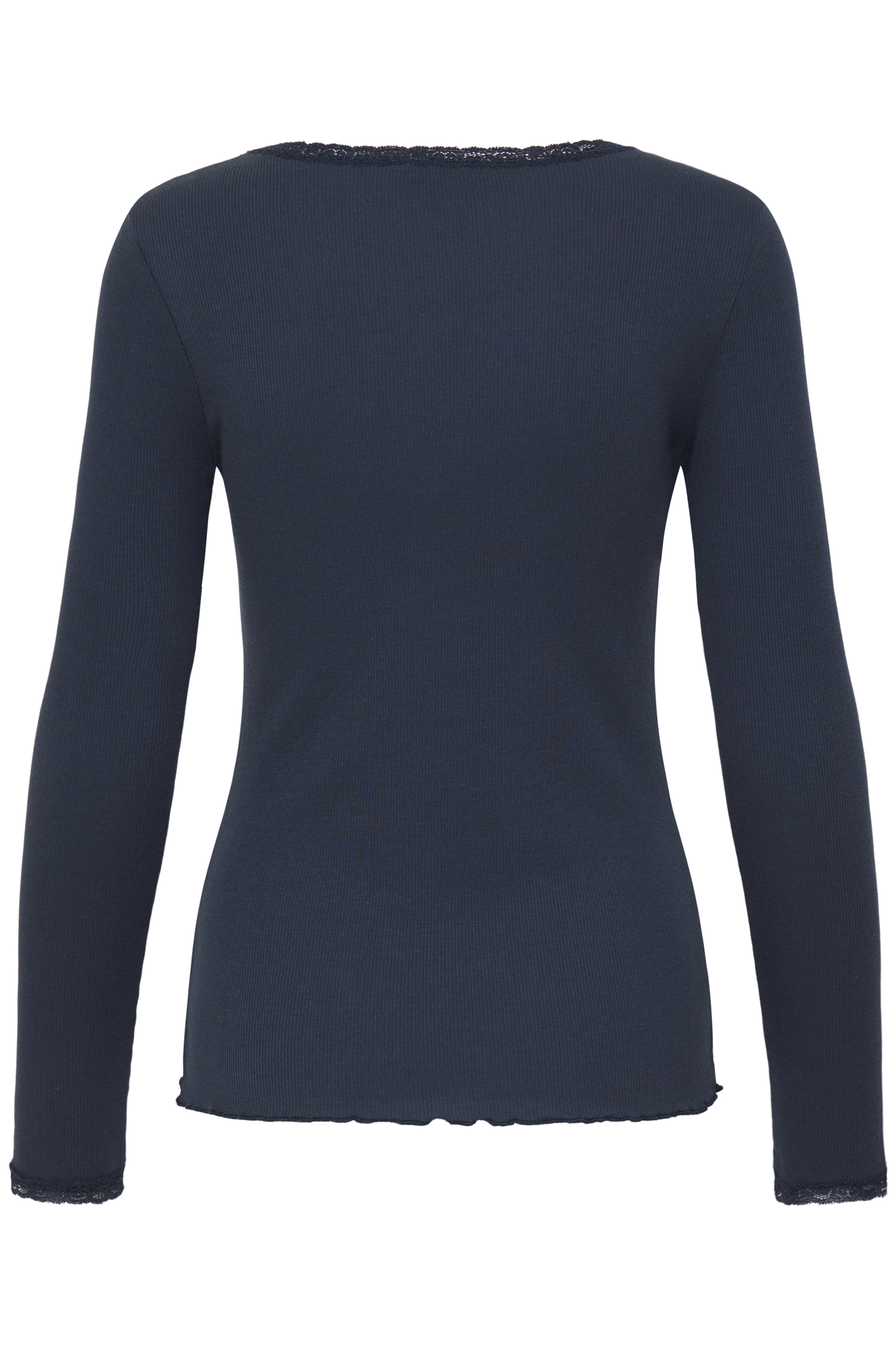 • Blondekant ved ærmer og hals
