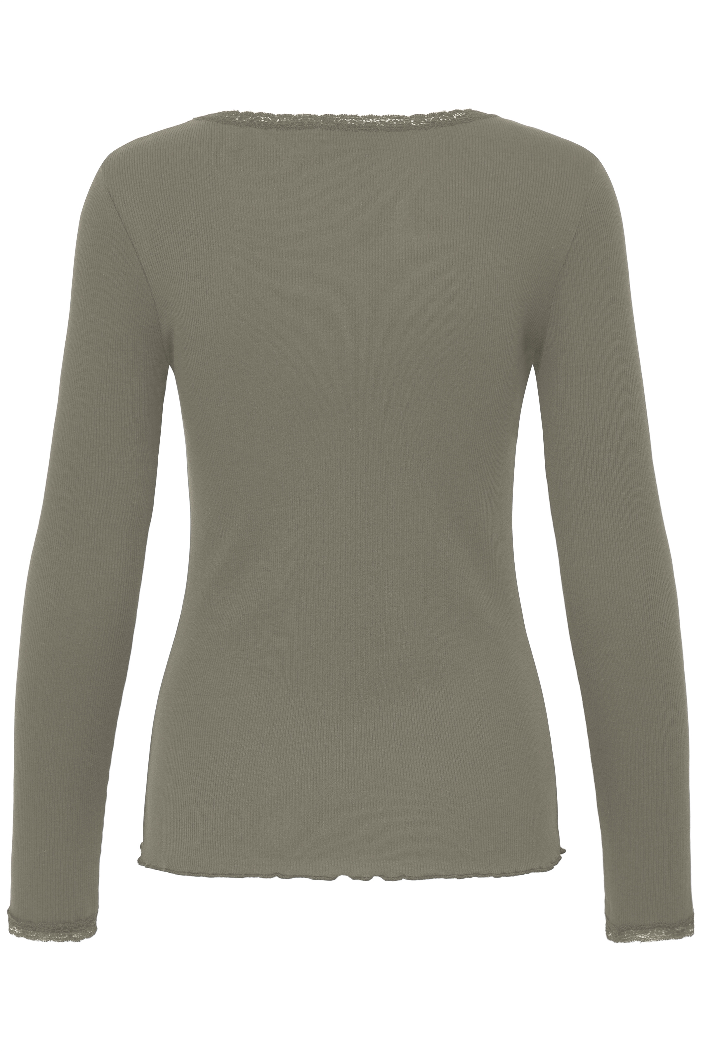 • Blondekant ved ærmer og hals