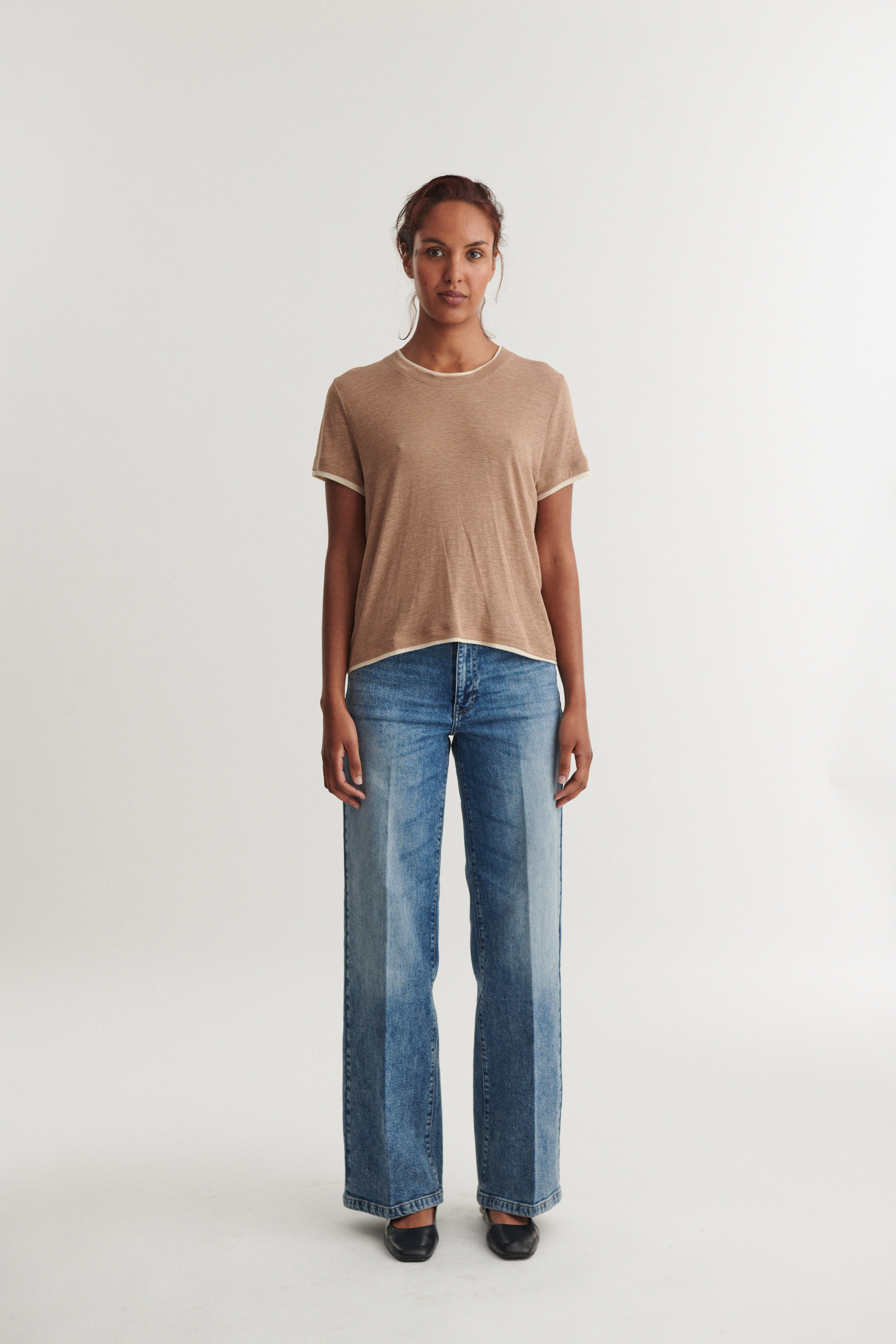 Opdag komforten og stilen ved Ashly Double T-shirt fra Basic Apparel. Denne T-shirt er designet til at være en alsidig tilføjelse til enhver garderobe. Den har en klassisk rund hals, der giver et tidløst look og kan nemt matches med forskellige outfits. Med sine korte ærmer er den ideel til varmere dage eller som et lag under en jakke eller cardigan. T-shirten har en almindelig pasform, der sikrer en afslappet og behagelig følelse uden at kompromittere på stilen. Den er fremstillet af en blanding af hør og lyocell, som giver en let og åndbar kvalitet, der føles blød mod huden. Uanset om du planlægger en dag på kontoret, en afslappet weekend eller en aften ude, vil Ashly Double T-shirt være et pålideligt valg, der kombinerer funktionalitet med et moderne udtryk. Forny din basisgarderobe med dette alsidige og stilfulde stykke tøj fra Basic Apparel.