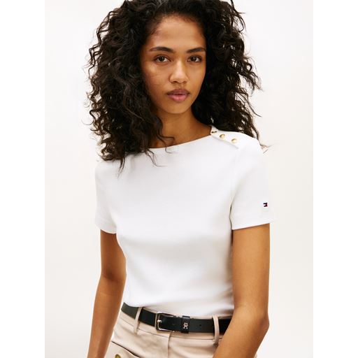 Gold Button Slim T-shirt, Ecru, S