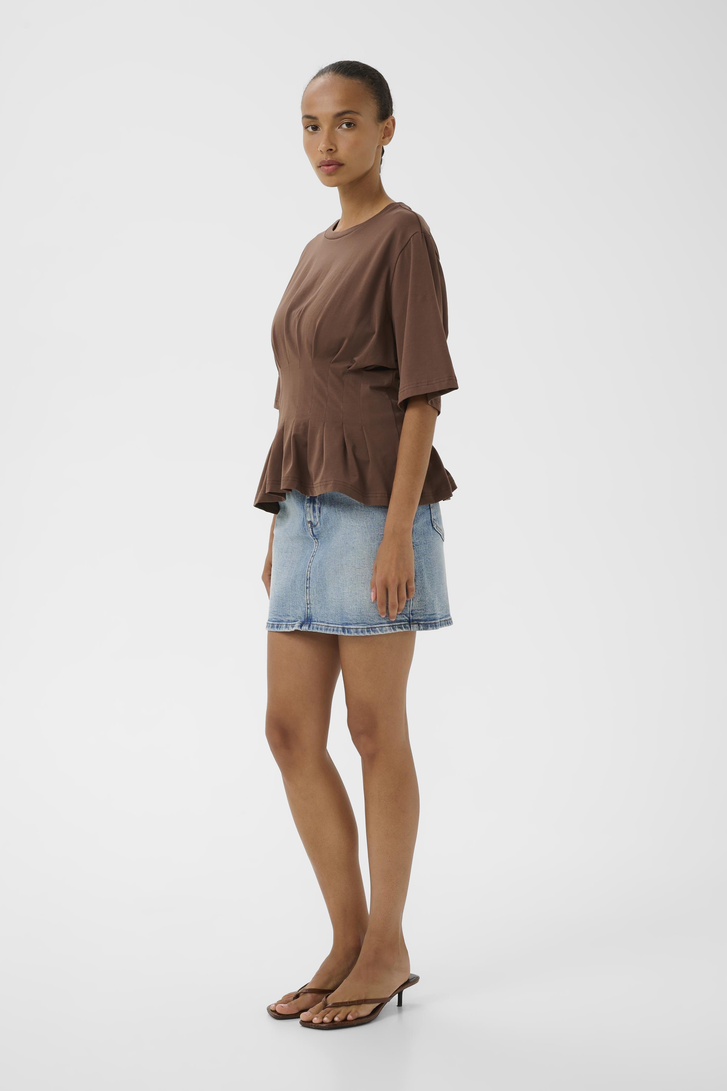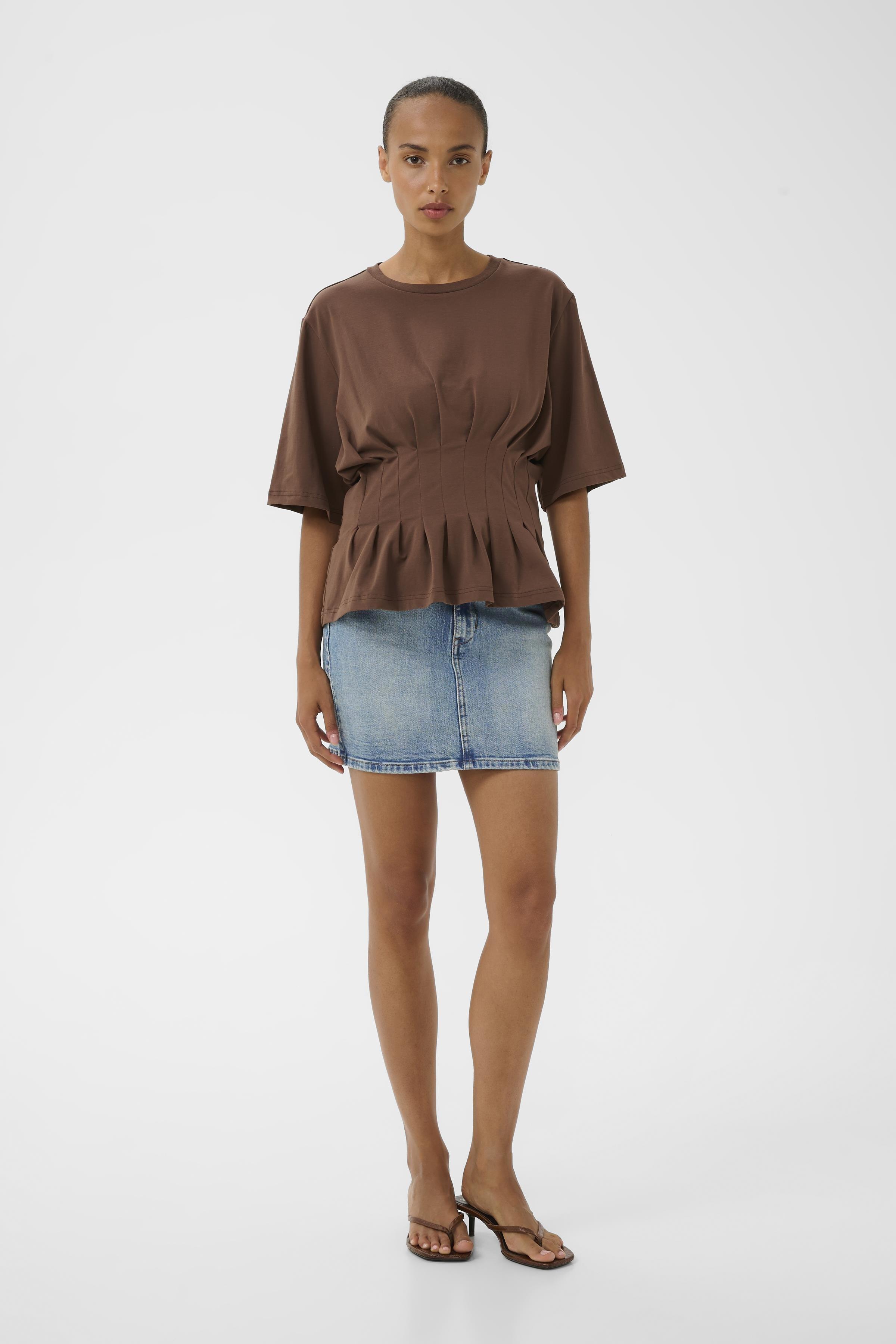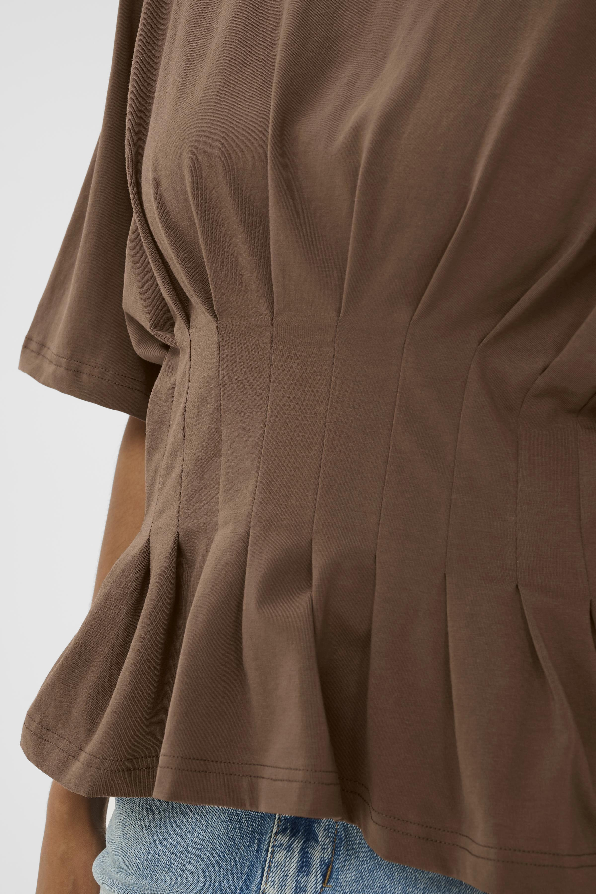 T-shirten skiller sig ud med sine plisseringer i taljen, der tilføjer et moderne twist og fremhæver taljen på en elegant måde. Designet er figursyet, hvilket betyder, at det smyger sig flot til kroppen og fremhæver de naturlige former uden at gå på kompromis med komforten. Gestuz sikrer med GZinez T-shirt, at du får et stilfuldt og funktionelt stykke tøj, der nemt kan integreres i din eksisterende garderobe.