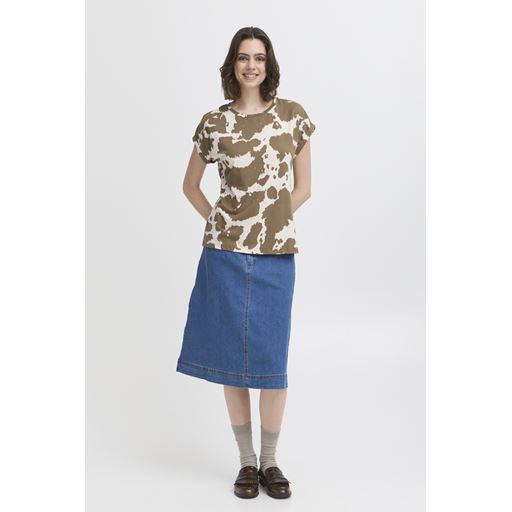 Kortærmet T-shirt, Moonbeam w. Brindle Cow Print, L